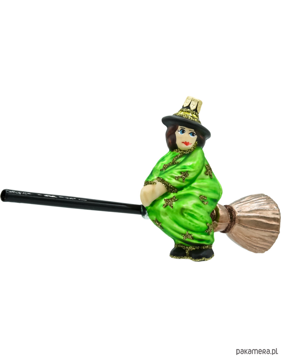 Bombka choinkowa: Czarownica na miotle: jasnozielona