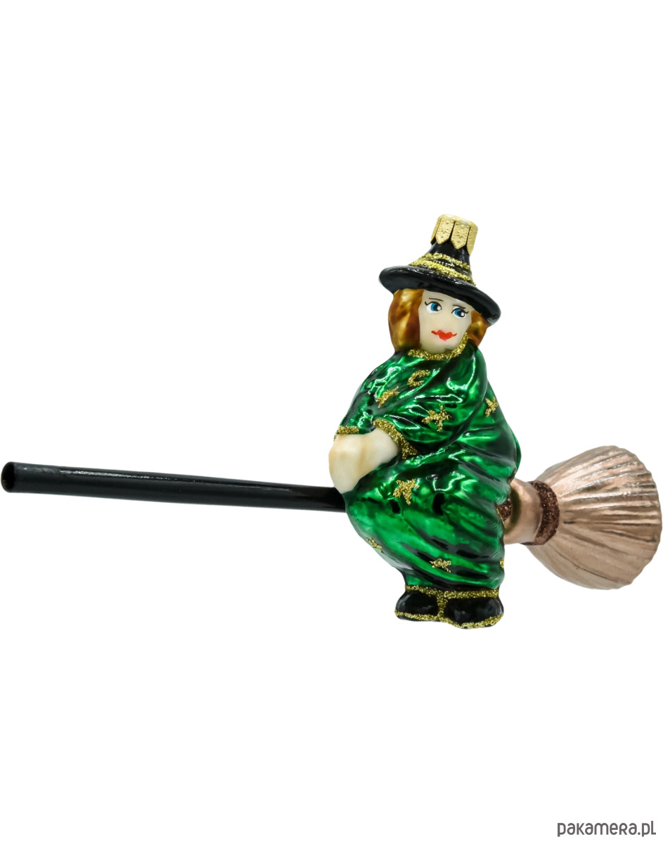 Bombka choinkowa: Czarownica na miotle: zielona
