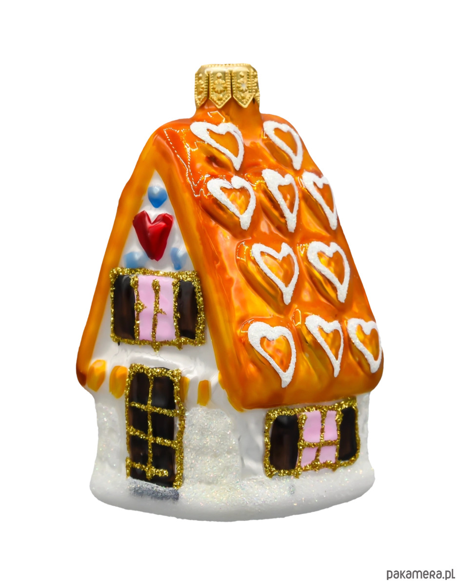 Bombka choinkowa: Domek z serduszkami: pomarańczowy