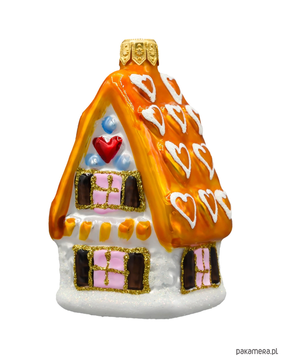 Wprowadź magię świąt do swojego domu dzięki ręcznie malowanej bombce choinkowej w kształcie domku piernikowego! Ta urocza ozdoba świąteczna wykonana jest z najwyższej jakości szkła i zachwyca precyzyjnym wykończeniem. Bombka przedstawia bajkowy domek z dachem ozdobionym białymi serduszkami przypominającymi lukier, złotymi akcentami oraz śnieżnym puchem u podstawy. Fasada domku zdobiona jest pastelowymi kolorami – różowymi oknami, czerwonym sercem oraz błękitnymi detalami, które dodają jej niezwykłego uroku i słodyczy.