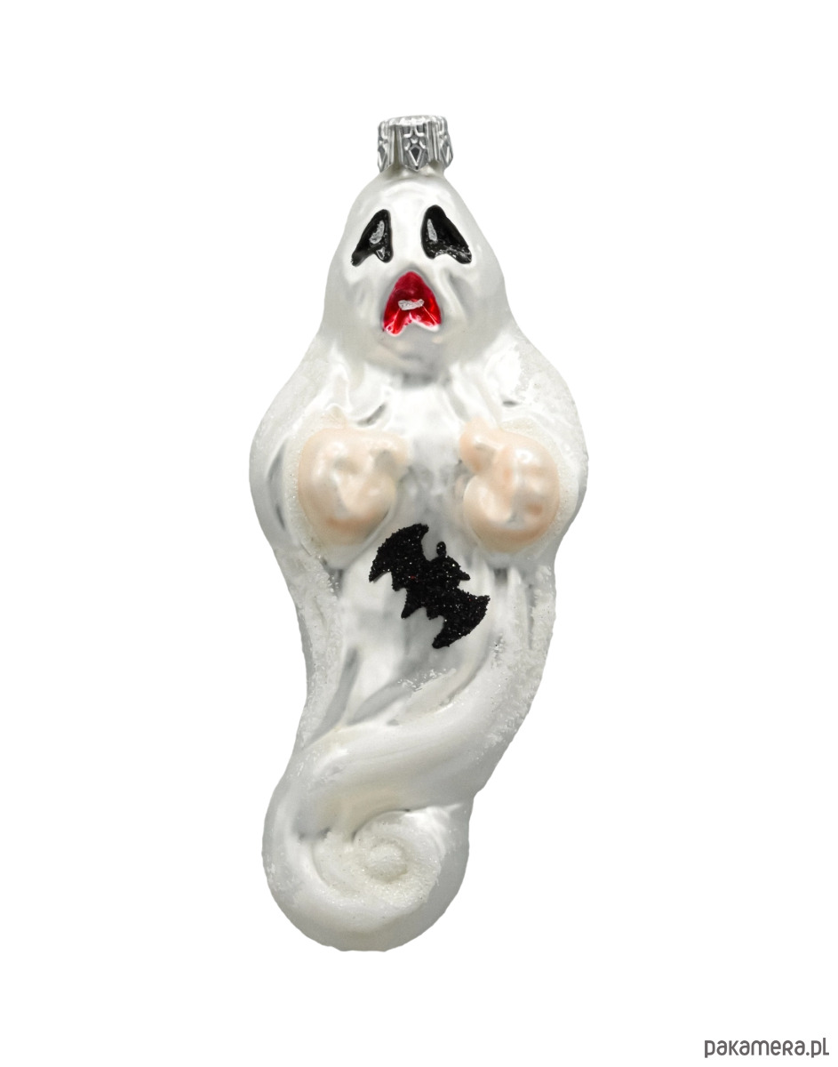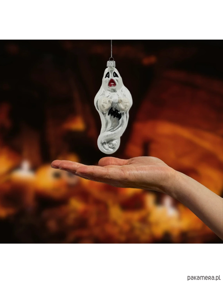 Wykończenie: Ozdoba zawiera delikatne, błyszczące akcenty, które nadają jej głębi i elegancji. Nietoperz na brzuchu ducha dodaje dodatkowego halloweenowego akcentu.