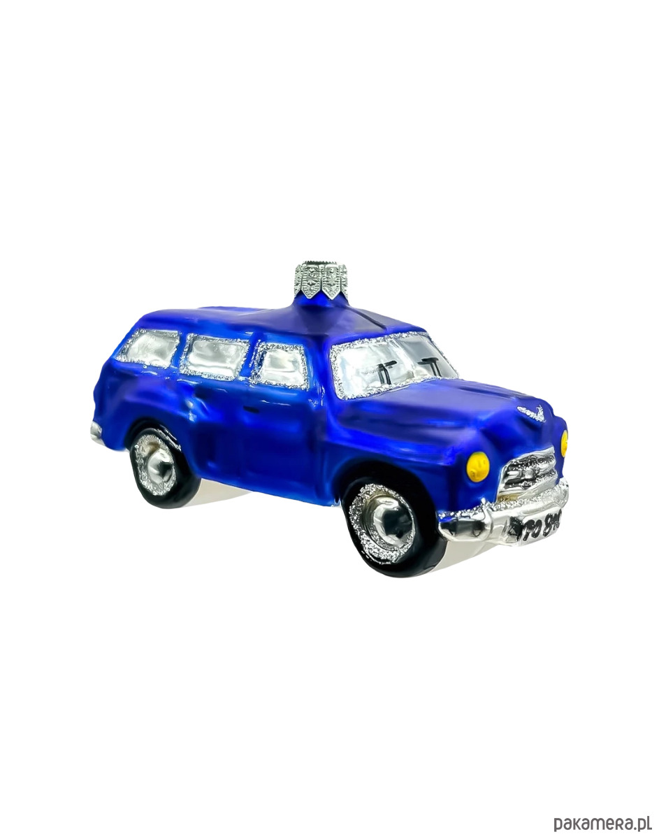 Niebieski samochód retro przywołuje wspomnienia dawnych podróży i stanowi symbol ponadczasowego stylu. Intensywny niebieski kolor i błyszczące, srebrne akcenty tworzą harmonijną kompozycję, która wyróżnia się na choince, dodając jej wyjątkowego charakteru i stylu.