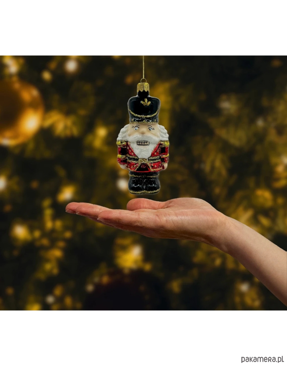 Bombka została wykonana ręcznie przez polskich rzemieślników z najwyższą starannością i dbałością o detale. Wykonana z wysokiej jakości szkła, jest nie tylko piękną ozdobą, ale także trwałym elementem, który przetrwa przez wiele lat. Precyzyjne malowanie, złote brokatowe akcenty oraz bogate detale munduru i czapki sprawiają, że bombka wygląda niezwykle elegancko.