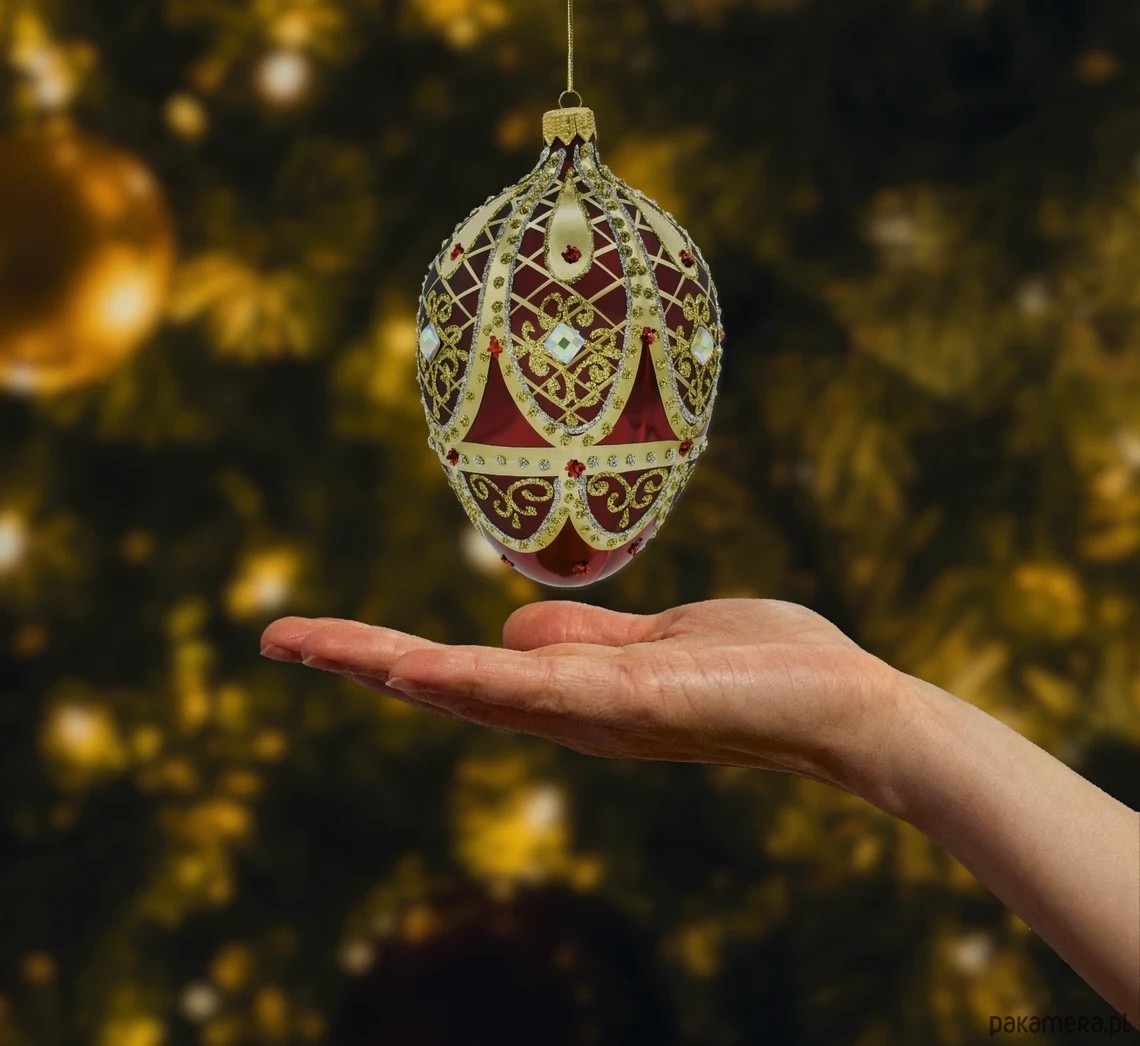 Bombka nawiązuje do legendarnych dzieł złotniczych stworzonych przez słynny Dom Fabergé, które od lat zachwycają swoim kunsztem i unikalnym designem.