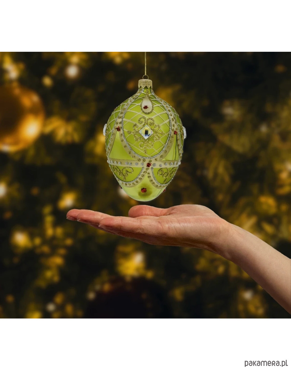 Szklane Jajo Fabergé w odcieniu głębokiej zieleni to idealne połączenie luksusu, elegancji i świątecznej tradycji. Jego unikatowy design oraz ręczne zdobienia sprawiają, że stanie się niezastąpionym elementem każdej aranżacji bożonarodzeniowej. Dodaj odrobinę królewskiego blasku do swoich świąt z tą wyjątkową bombką!