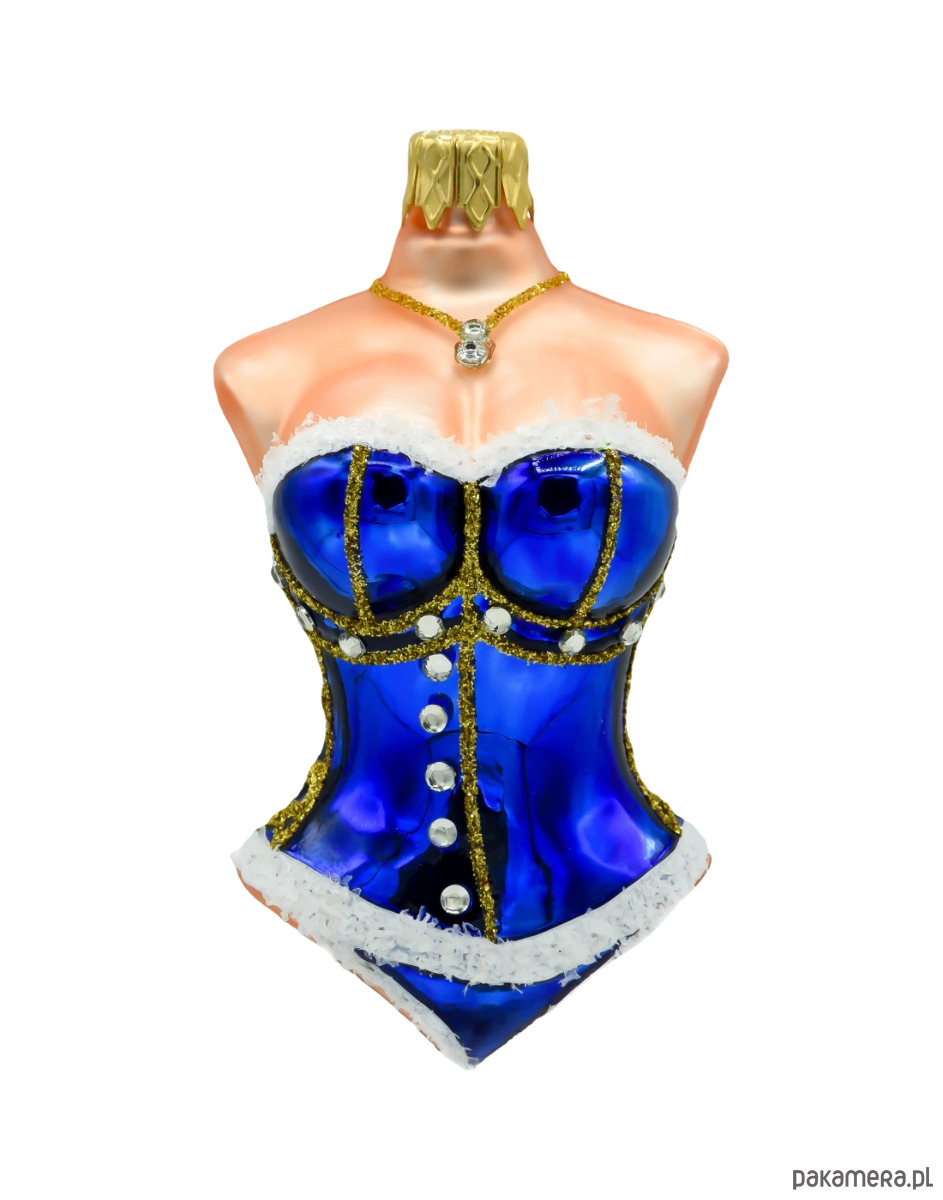• bombka w kształcie kobiecego torzo w kobaltowym gorsecie,