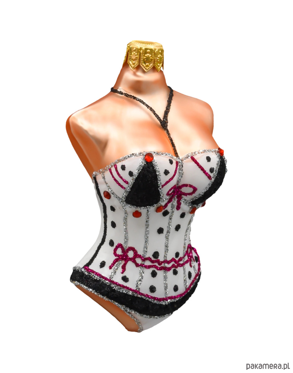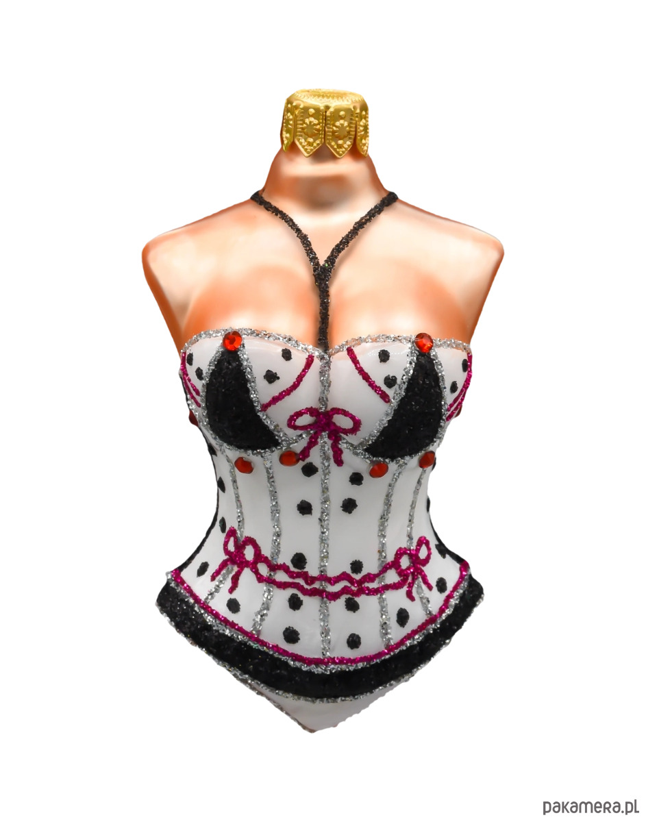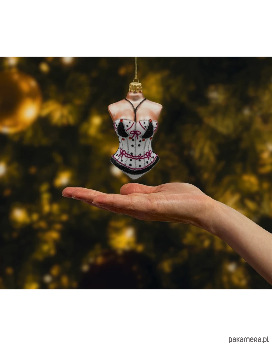 Szklana bombka w kształcie gorsetu to zdecydowanie coś więcej niż świąteczna ozdoba – to manifest stylu, kobiecości i śmiałej elegancji. Szklana bombka choinkowa w kształcie kobiecego torsu ubranego w biało-czarny gorset z czerwonymi i różowymi akcentami to propozycja dla osób, które lubią przełamywać klasykę nutą pikanterii i humoru. Wykonana ze szkła dmuchanego i ręcznie malowana, prezentuje się jak miniaturowe dzieło sztuki inspirowane stylem burleski i retro pin-up.
