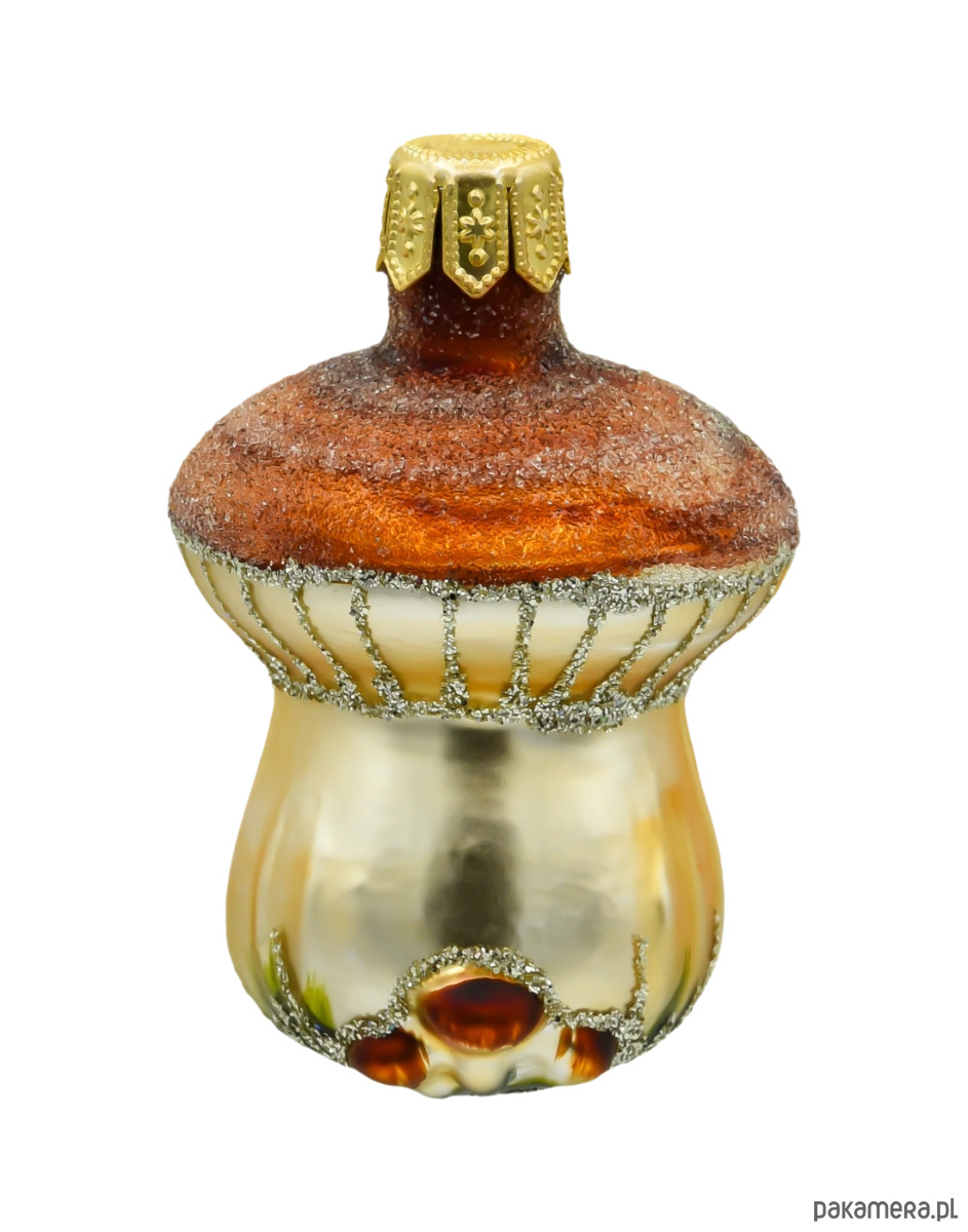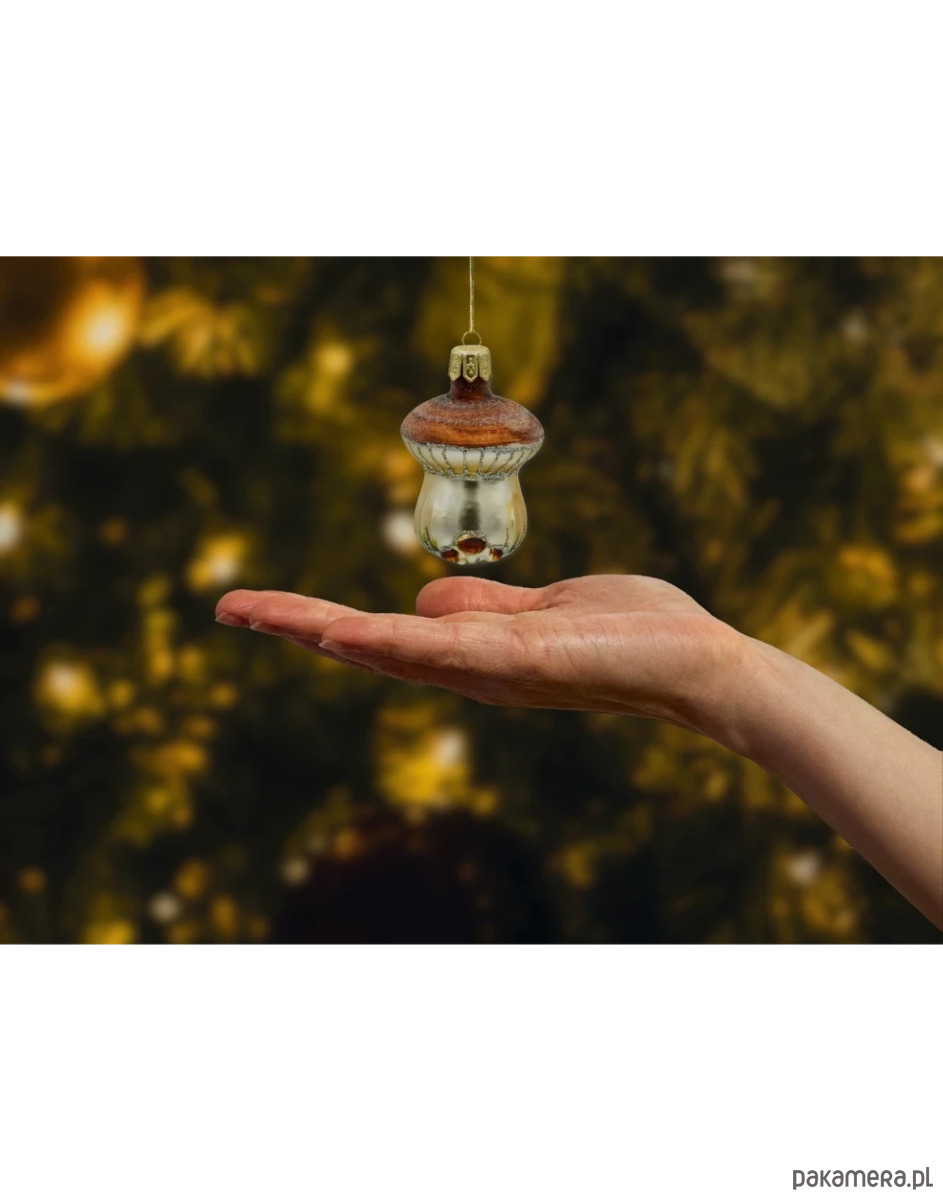 Wprowadź odrobinę natury do swojej świątecznej aranżacji dzięki tej wyjątkowej bombce choinkowej w kształcie grzyba! Ozdoba ta łączy klasyczne, leśne inspiracje z nutą elegancji i świątecznego blasku. Ręcznie wykonana ze szkła dmuchanego i ozdobiona brokatem, prezentuje się niezwykle efektownie – od ciepłego brązu kapelusza po perłowo-złoty trzon z subtelnymi detalami i srebrzystymi akcentami.