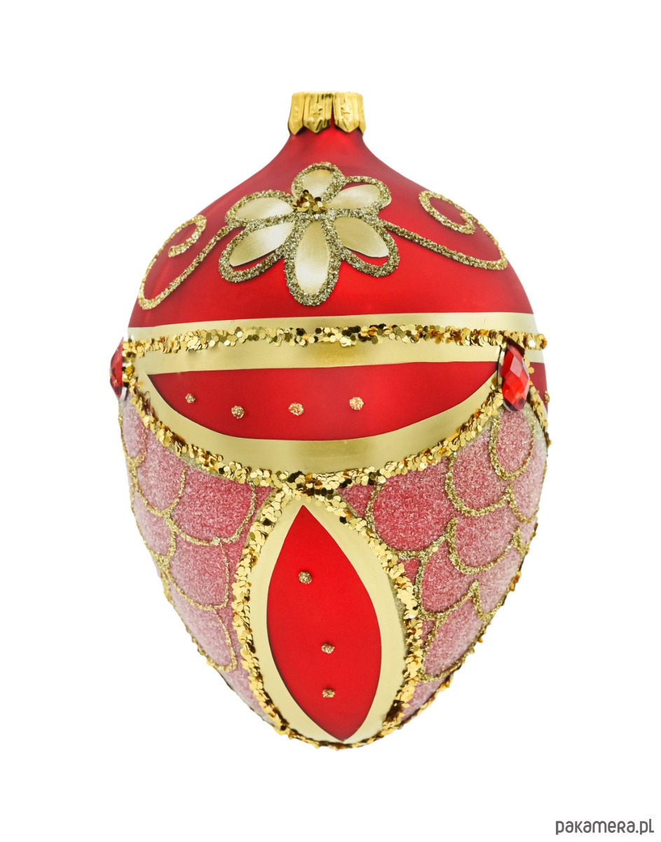 Bombka choinkowa: Jajo ze złotym kwiatem: czerwone