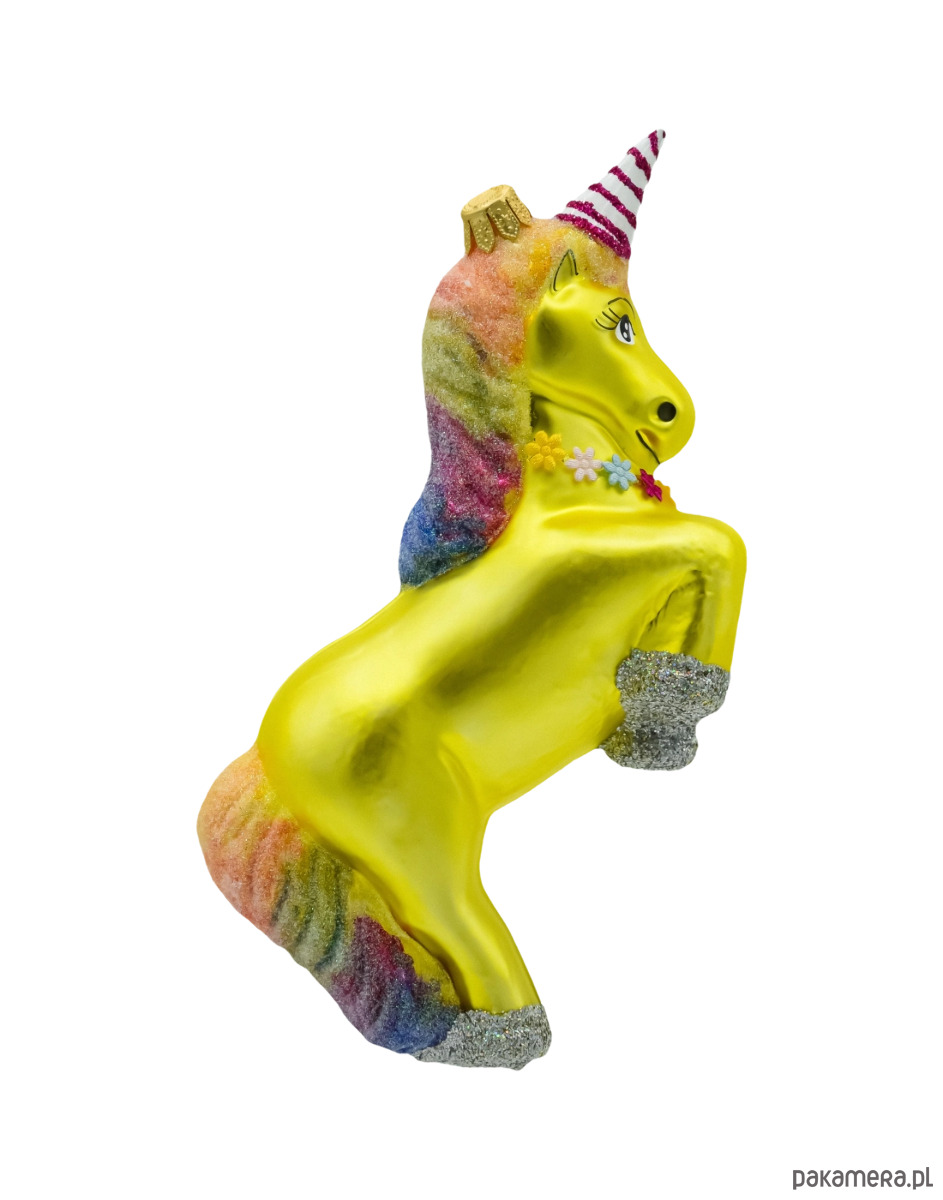 Bombka choinkowa: Jednorożec z tęczową grzywą: żółty