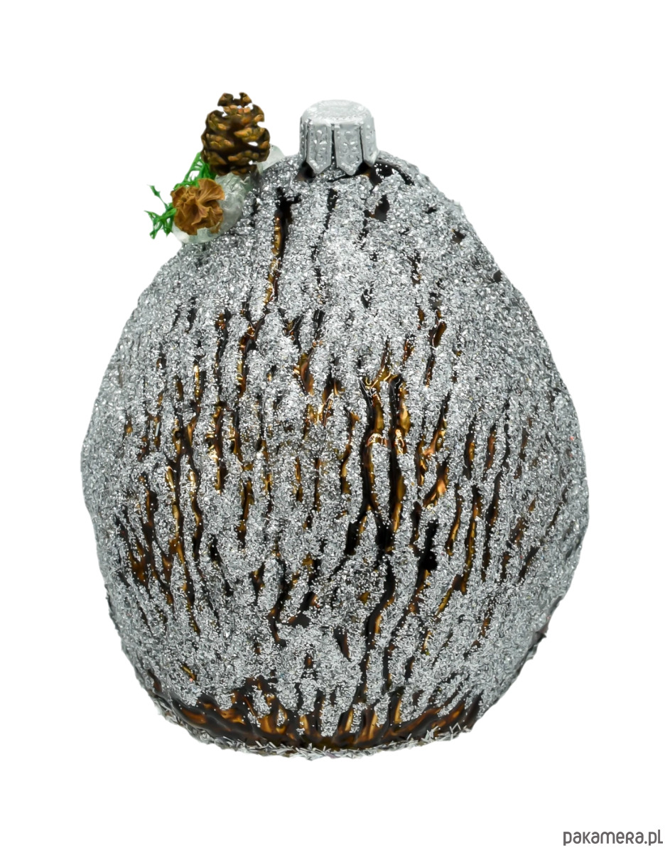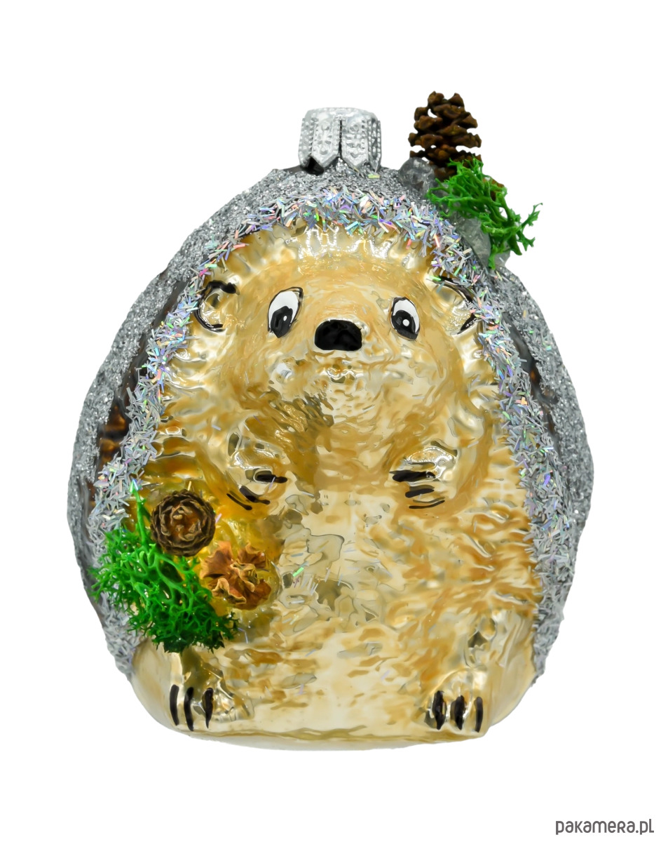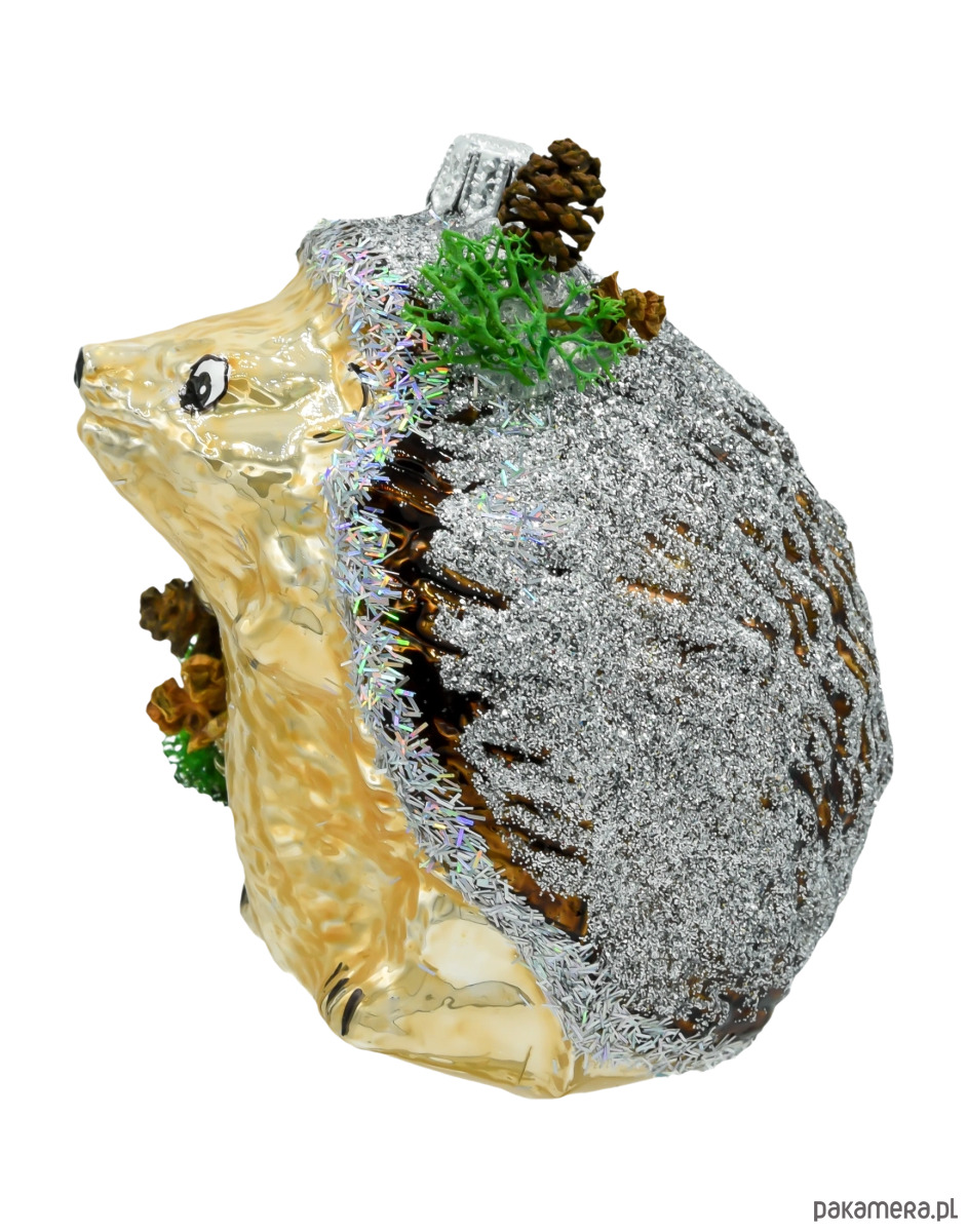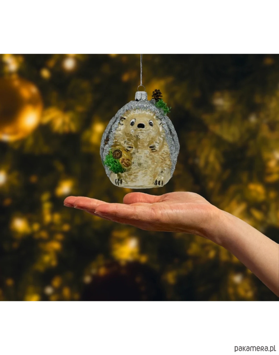 Ta wyjątkowa bombka choinkowa w kształcie uroczego jeżyka zachwyca naturalnym wdziękiem i świątecznym blaskiem. Ręcznie malowany korpus jeża w odcieniach beżu i brązu został ozdobiony srebrnym brokatem, który imituje kolce i nadaje bombce efektownego połysku. Na grzbiecie dekoracji znajdują się drobne, realistyczne szyszki oraz zielony mech, które podkreślają leśny charakter ozdoby. Szklana bombka jeż doskonale wpisuje się w trend świątecznych dekoracji inspirowanych naturą i jest idealnym dodatkiem do choinki w stylu rustykalnym, skandynawskim lub klasycznym. Dzięki swojej precyzyjnie wykonanej formie, bombka jeż z szyszkami i brokatem przyciąga wzrok i nadaje drzewku wyjątkowej osobowości.