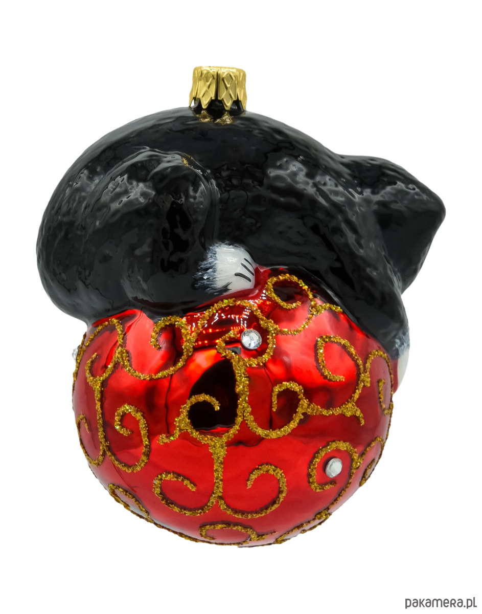 Bombka choinkowa w kształcie siedzącego kota z zielonym kłębkiem wełny to idealna propozycja dla wszystkich wielbicieli futrzanych pupili i oryginalnych dekoracji świątecznych. Ozdoba została wykonana ręcznie z najwyższej jakości szkła dmuchanego, a następnie starannie pomalowana i udekorowana brokatem, co czyni ją prawdziwym dziełem sztuki.