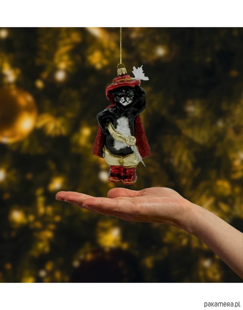 Bombka „Kot w butach” stanie się centralnym punktem świątecznego drzewka, dodając mu bajkowego i magicznego klimatu.