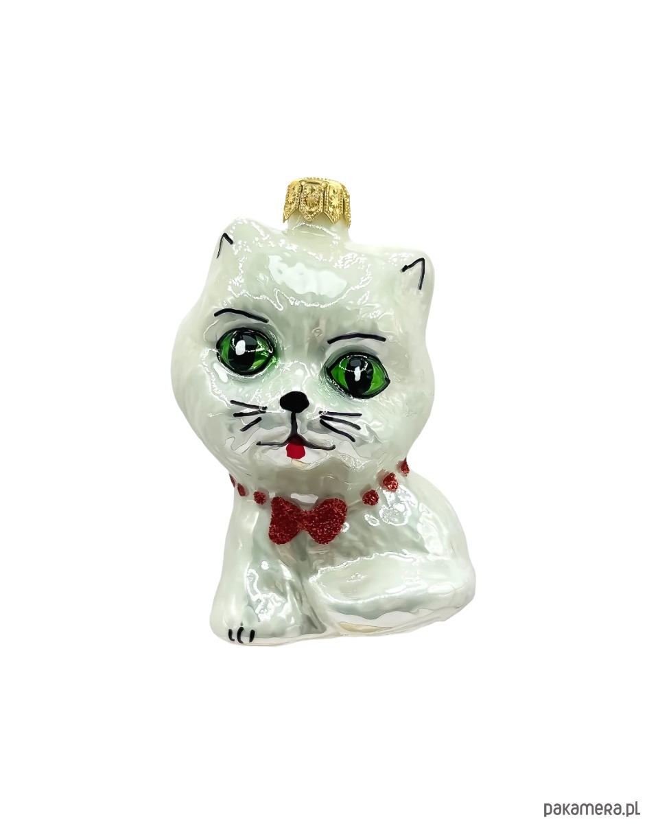 Bombka choinkowa: Kot z czerwoną muchą: biały