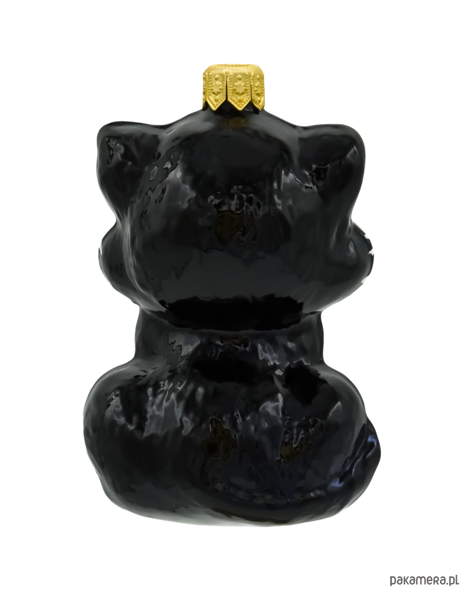 Bombka została wykonana ze szkła dmuchanego, a następnie starannie ozdobiona brokatem, który pięknie odbija światło choinkowych lampek. To idealny wybór zarówno dla miłośników kotów, jak i osób, które cenią nietuzinkowe i pełne osobowości dekoracje świąteczne.