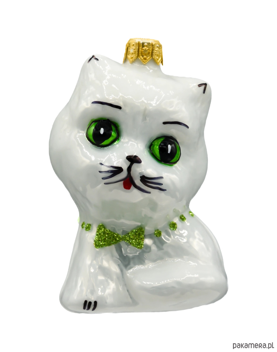 Bombka choinkowa: Kot z zieloną muchą: biały