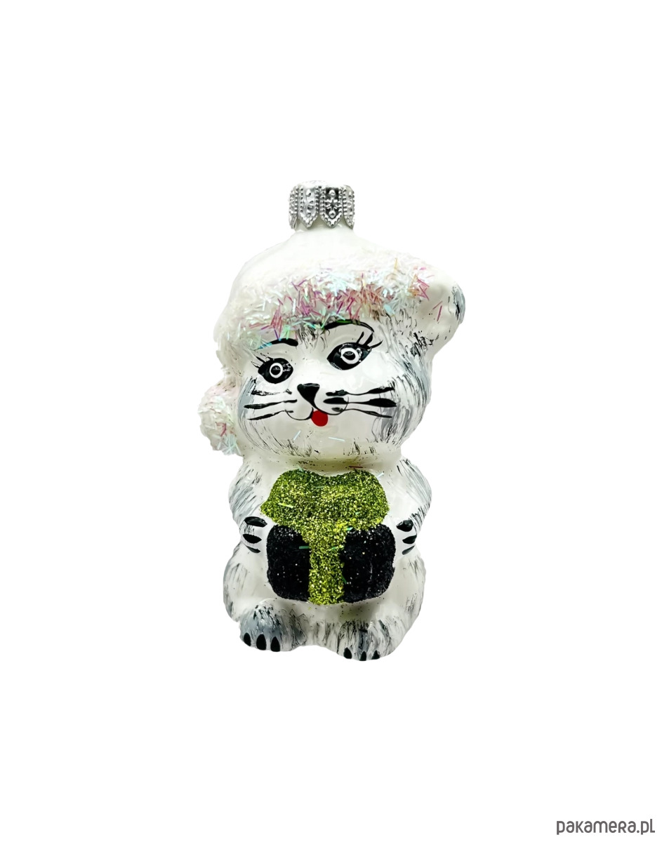 Dodaj swojej choince wyjątkowy, ciepły akcent dzięki tej uroczej bombce kotka z prezentem – zamów już dziś i ciesz się wyjątkową atmosferą Świąt!