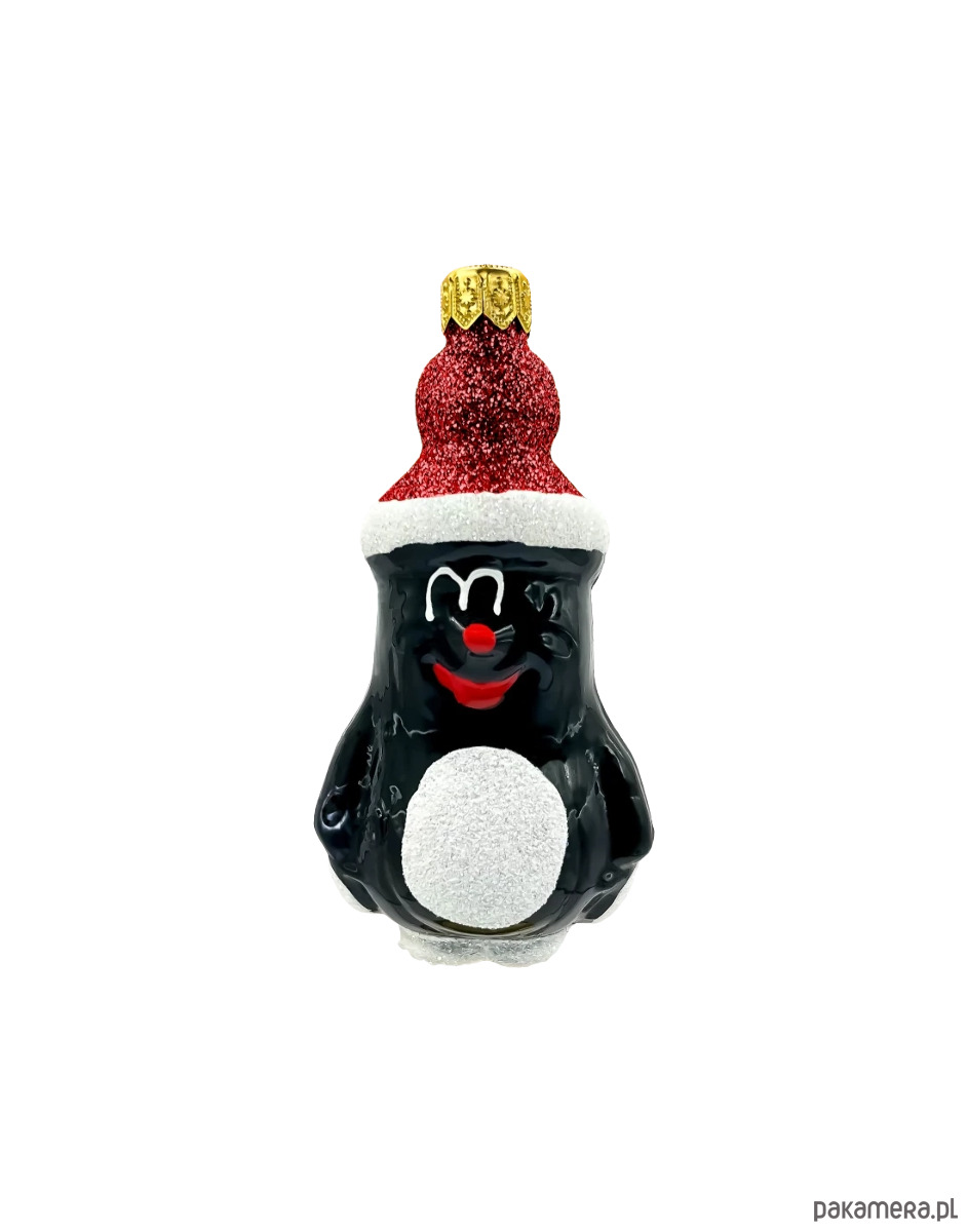 Bombka choinkowa: Krecik w brokatowej czapie: czerwony