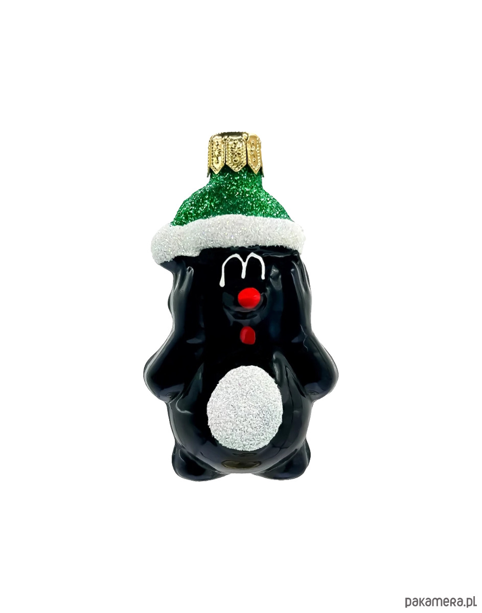 Motyw: Krecik w zielonej, brokatowej czapce z białym, śnieżnym obszyciem. Jego radosny wyraz twarzy, czerwony nosek oraz charakterystyczne, duże oczy sprawiają, że ozdoba emanuje urokiem i doskonale oddaje świąteczną atmosferę.
