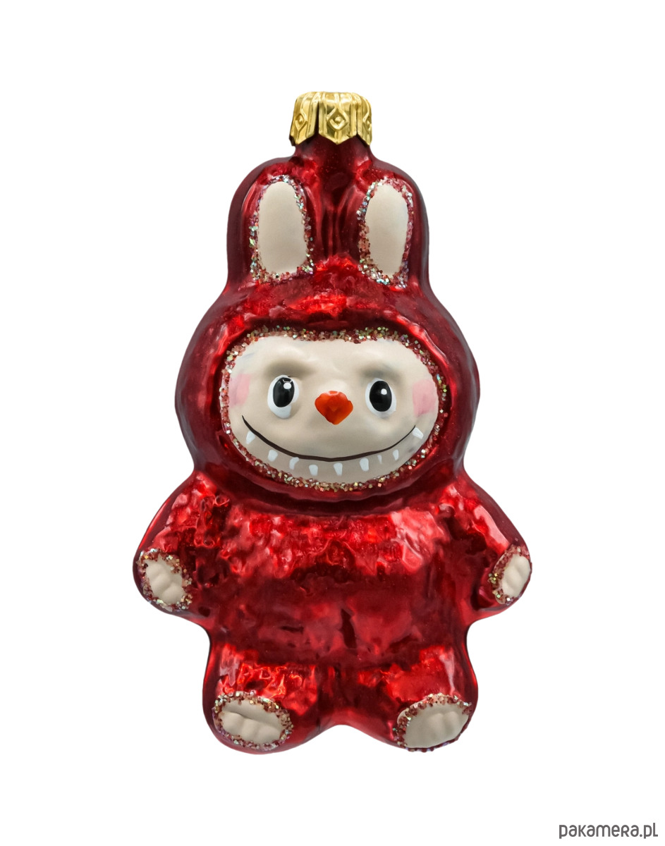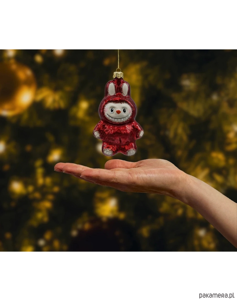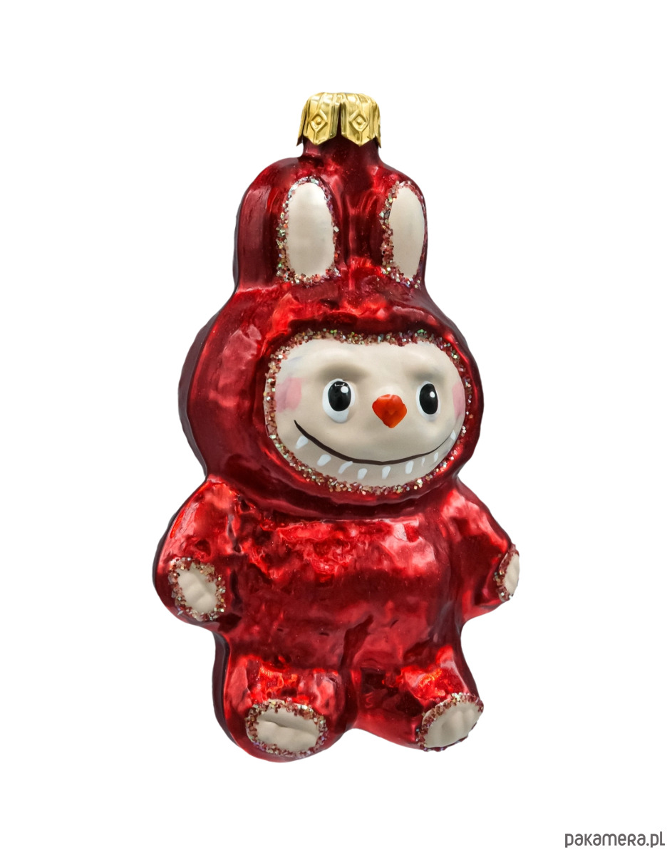 Bombka szklana inspirowana Labubu – czerwony króliczek
