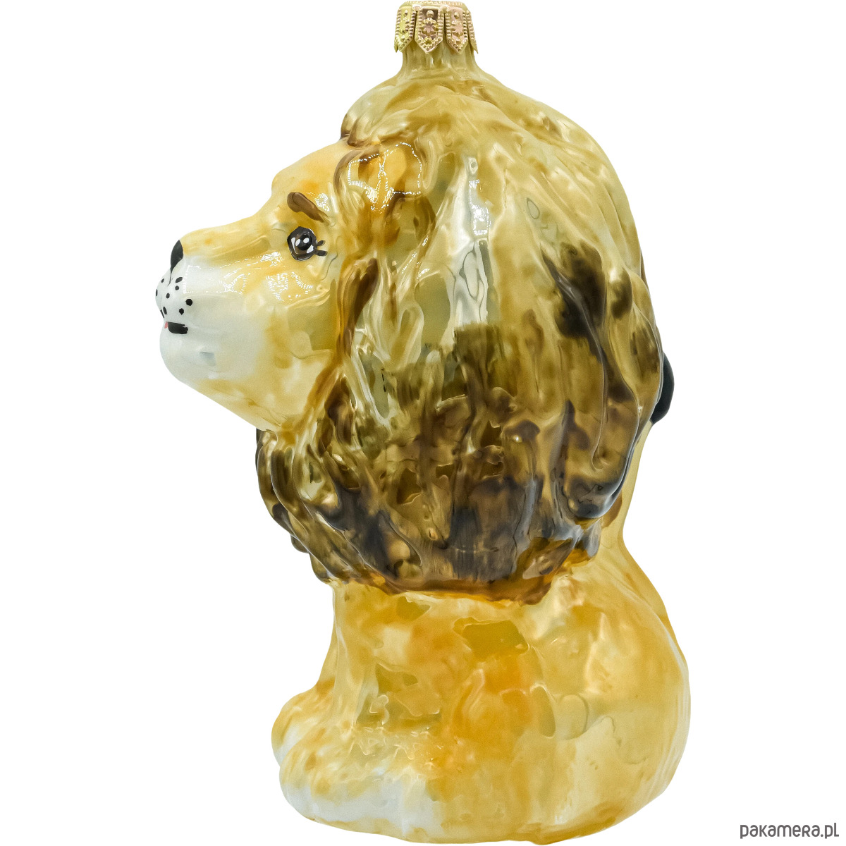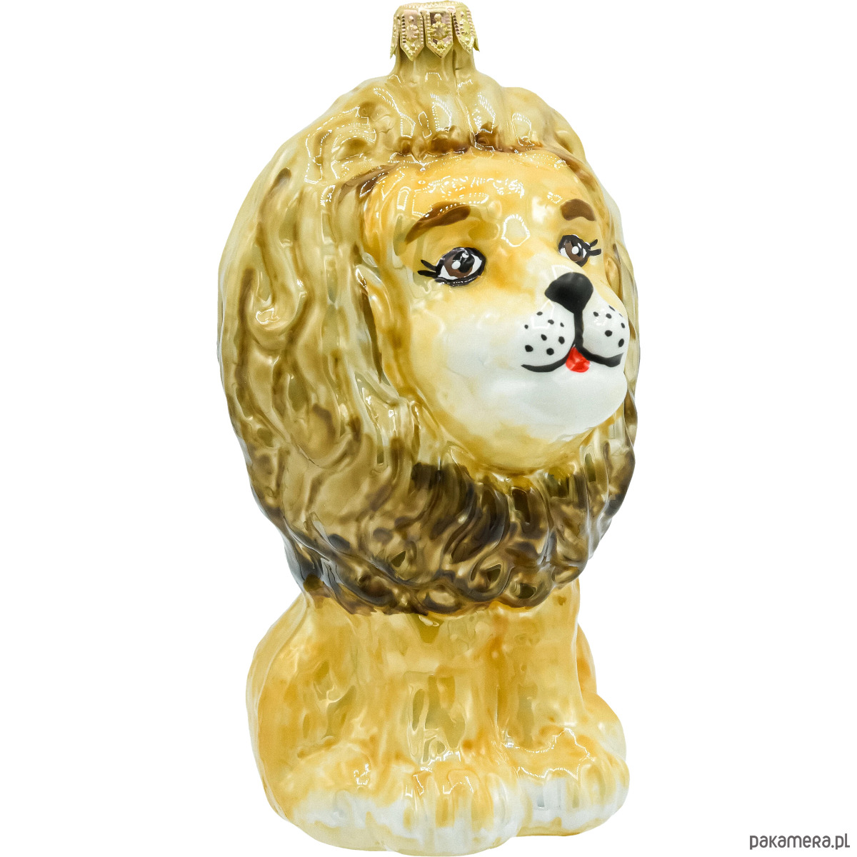 Ręcznie dmuchana i malowana w polskiej manufakturze bombka-figurka przedstawiająca majestatycznego lwa. Szlachetne, złocisto-miodowe odcienie grzywy z delikatnym cieniowaniem nadają ozdobie głębi i naturalnego charakteru, a błyszczące szkło pięknie odbija światło lampek na choince. Starannie modelowana forma (tułów z imponującą grzywą i sympatycznym pyszczkiem) sprawia, że to dekoracja, obok której nikt nie przejdzie obojętnie – idealna do świątecznych aranżacji w stylu klasycznym, glam, boho czy „leśnym”.