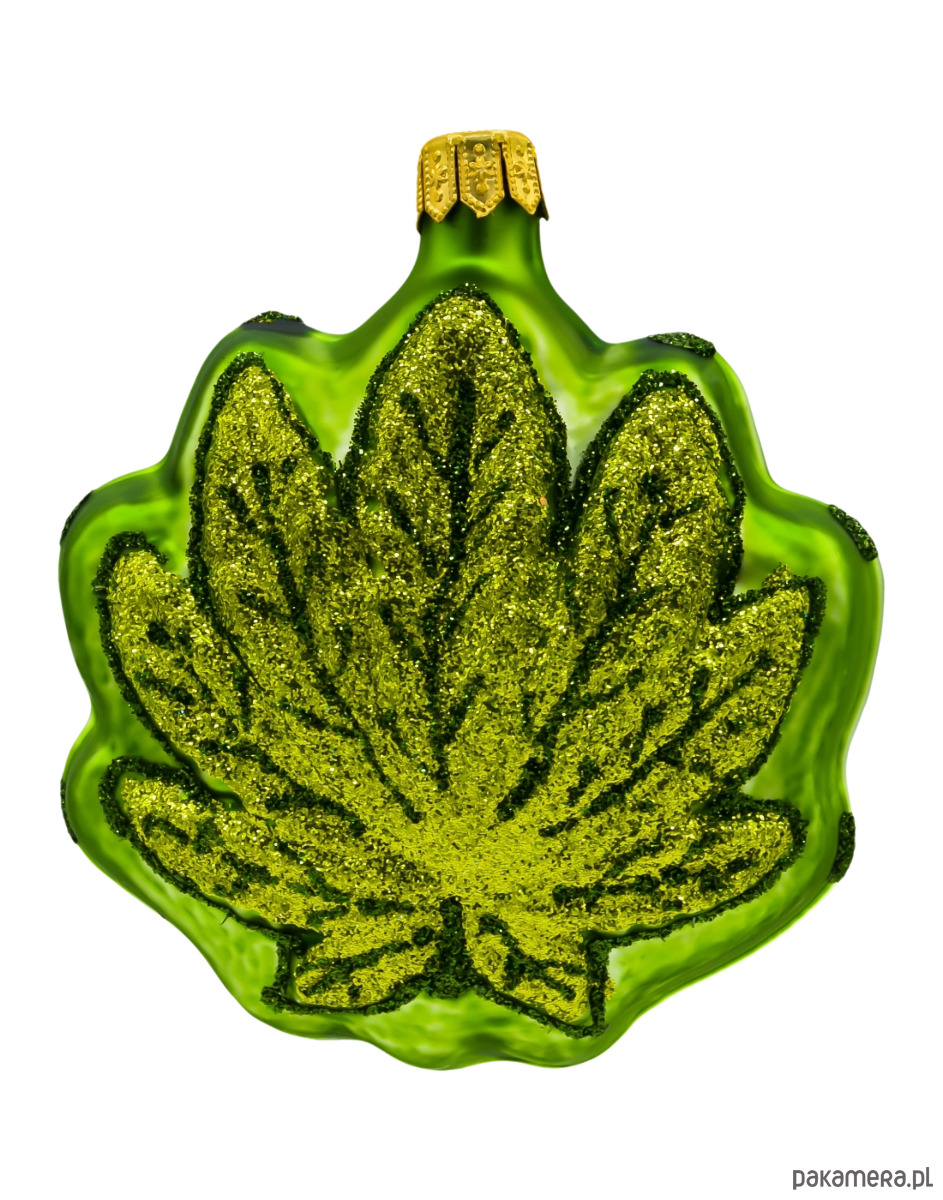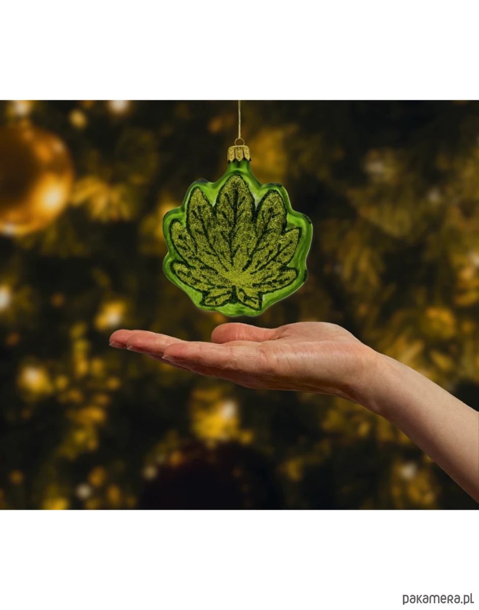 Bombka Figurka Szklana w kształcie liścia konopi – zielona, błyszcząca ozdoba choinkowa dla odważnych i z dystansem