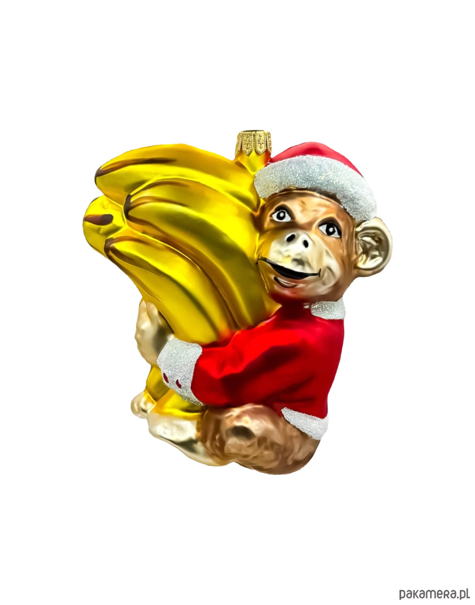 Bombka choinkowa: Małpka z bananami w świątecznym stroju