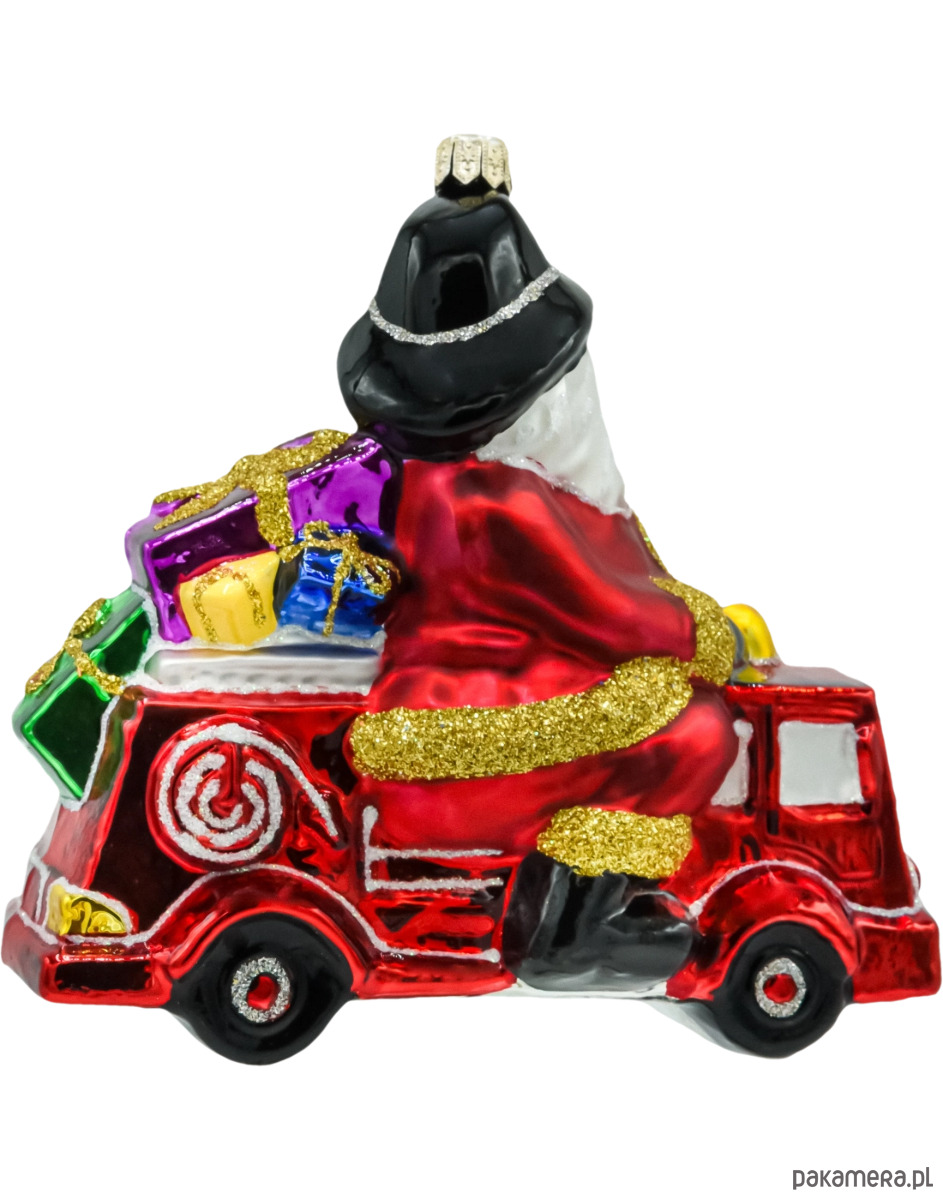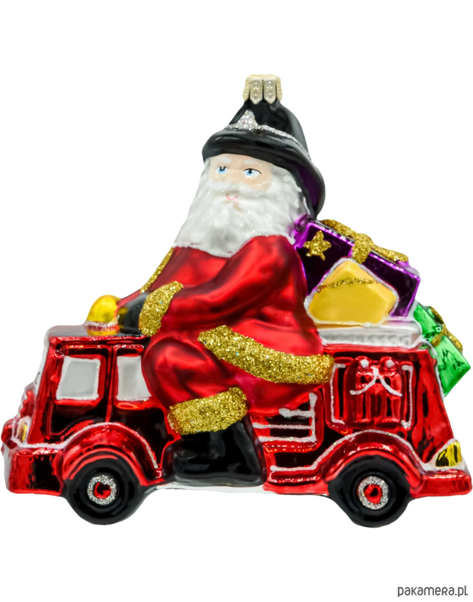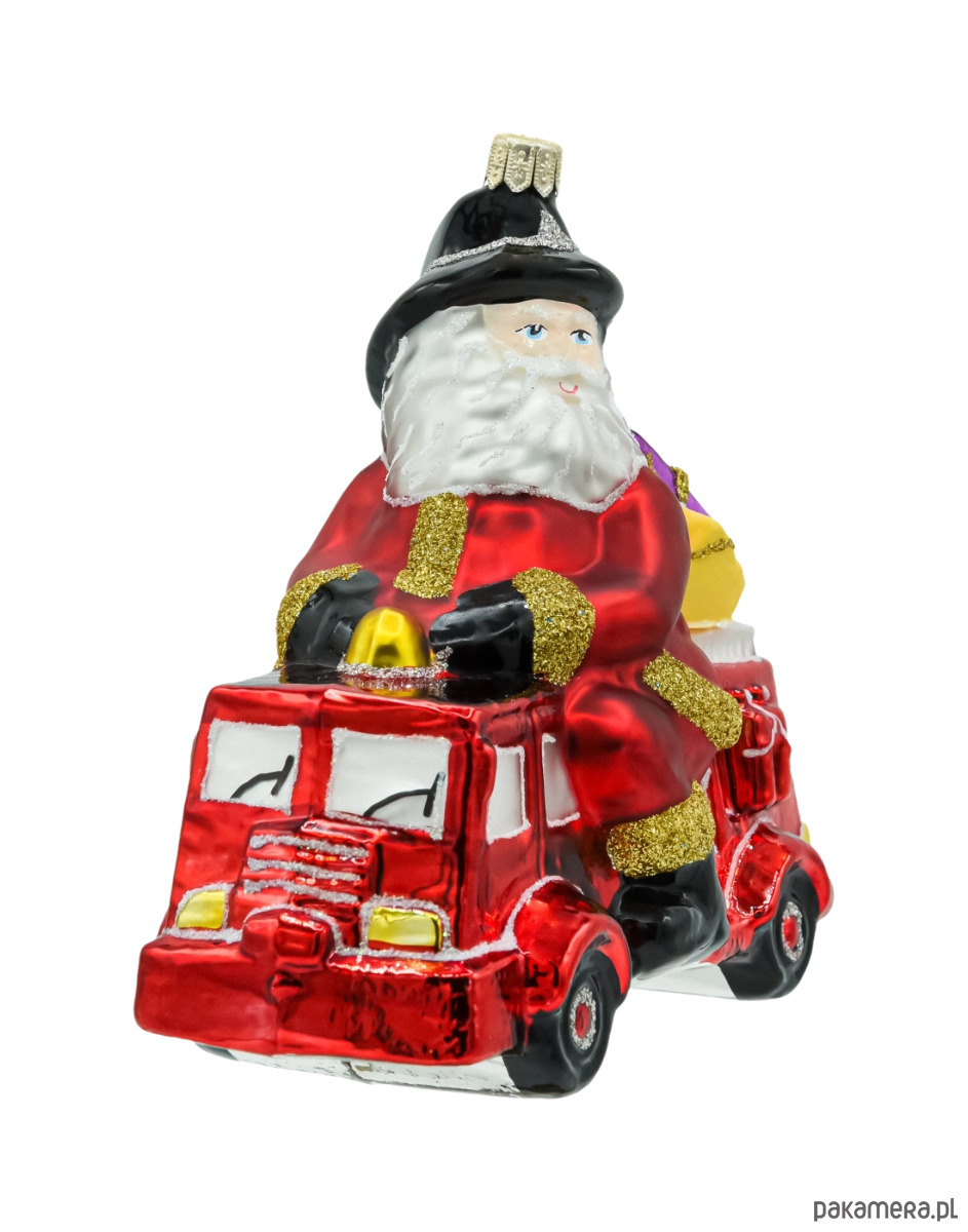 Bombka choinkowa: Mikołaj w wozie strażackim