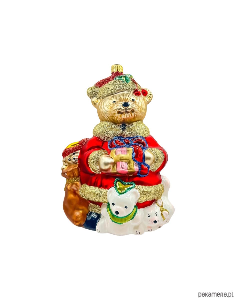 Bombka choinkowa: Mikołajowy Miś z Prezentami