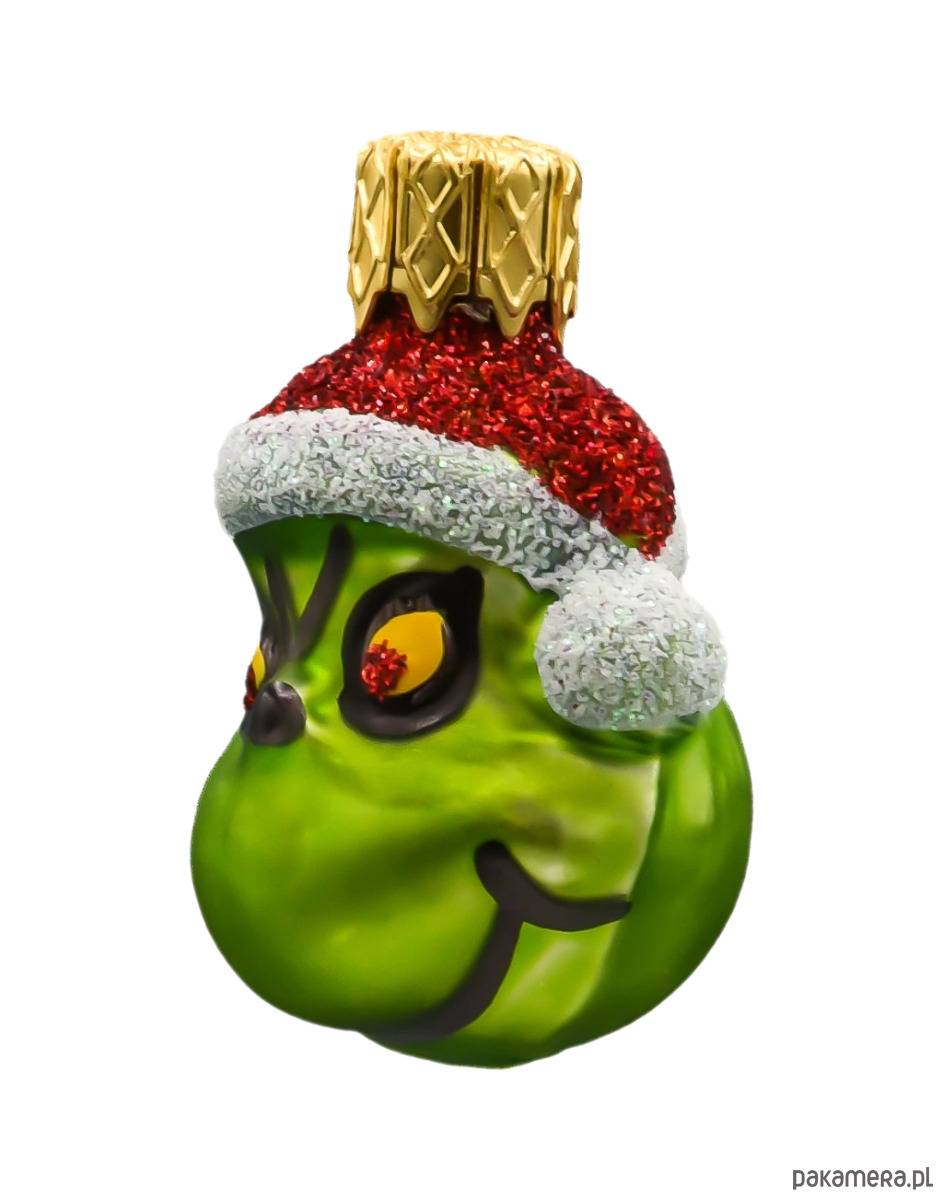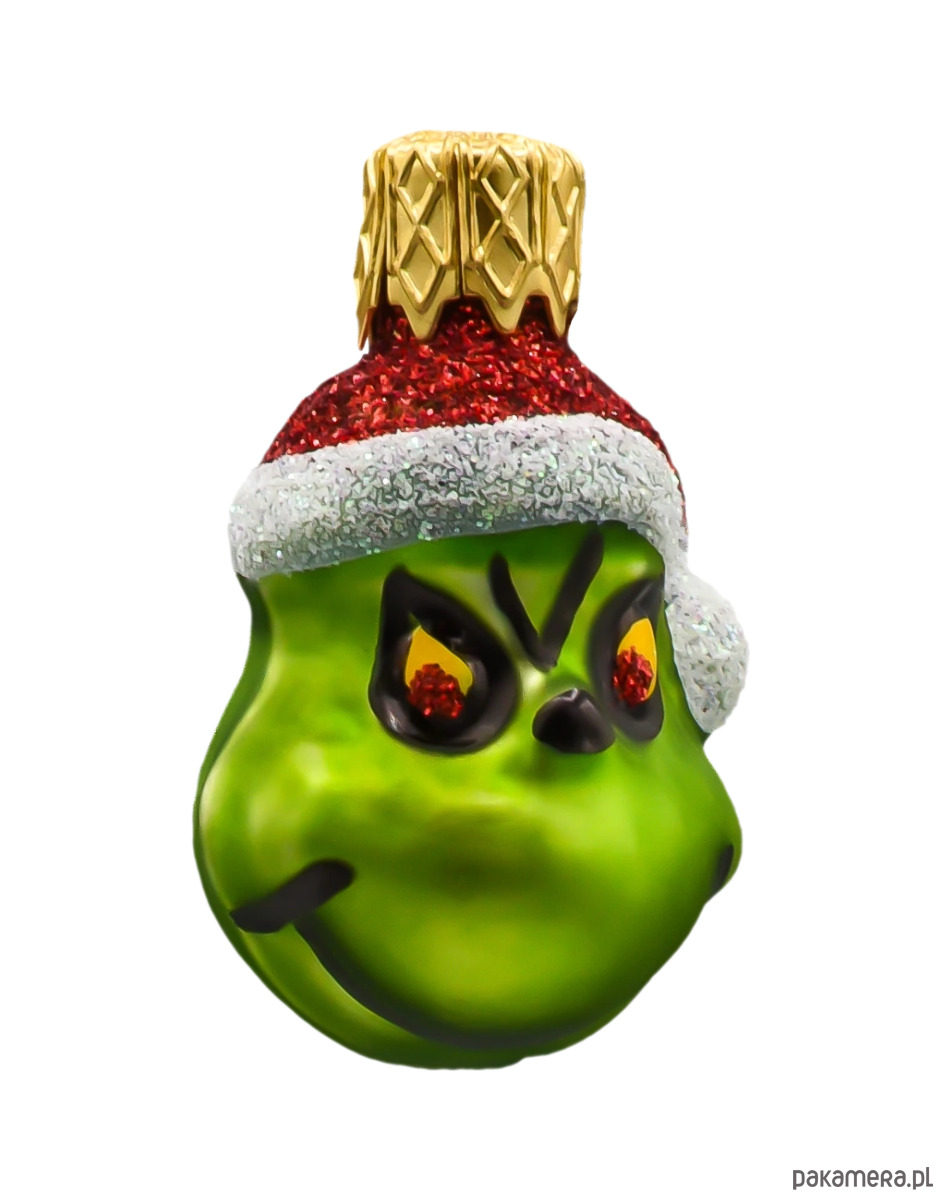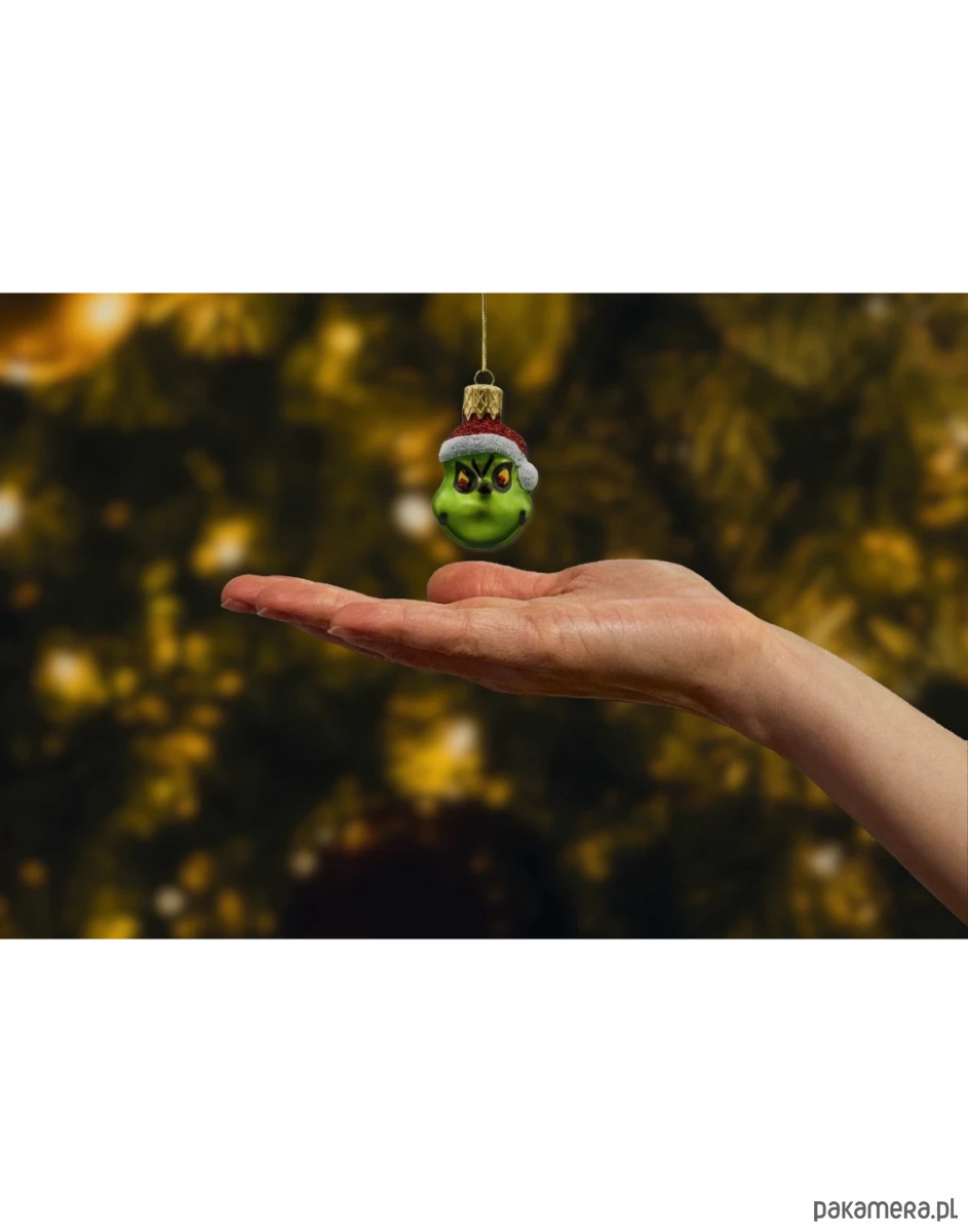 Szukasz bombki, która rozbawi gości i doda choince zadziornego charakteru? Bombka choinkowa w kształcie zielonego Grincha Psotnika to idealna propozycja dla tych, którzy kochają święta z przymrużeniem oka! Ręcznie malowana i wykonana ze szkła dmuchanego, ozdoba przedstawia szeroko uśmiechniętą, zieloną twarz w czerwonej, brokatowej czapce św. Mikołaja. Całość zdobią puszyste brwi i biały futrzany rant czapki, które dodają jej wyjątkowego uroku.