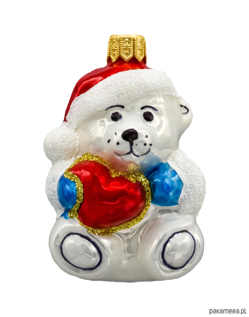 Bombka choinkowa: Miś polarny w czapce Świętego Mikołaja z sercem
