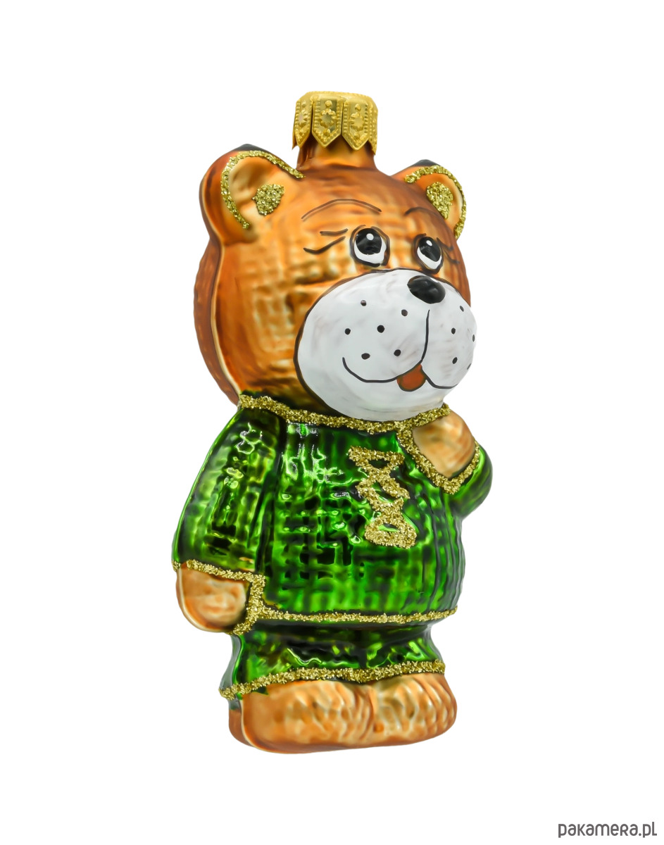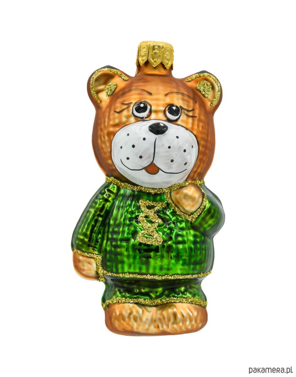 • Motyw: miś w zielonym sweterku ze złotymi zdobieniami