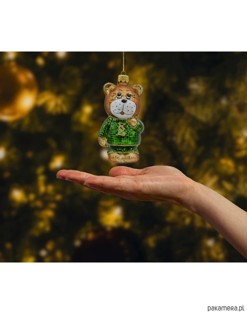 Ożyw swoją choinkę tą wyjątkową bombką w kształcie misia w zielonym sweterku! To ręcznie wykonana ozdoba świąteczna ze szkła, która urzeka nie tylko precyzją wykonania, ale i niepowtarzalnym charakterem.