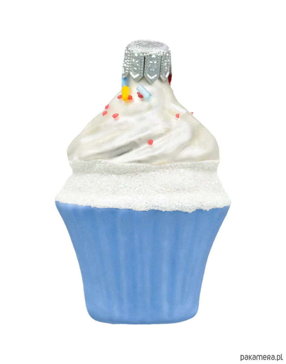 Bombka choinkowa: Muffinek z kremem i posypką: niebieski