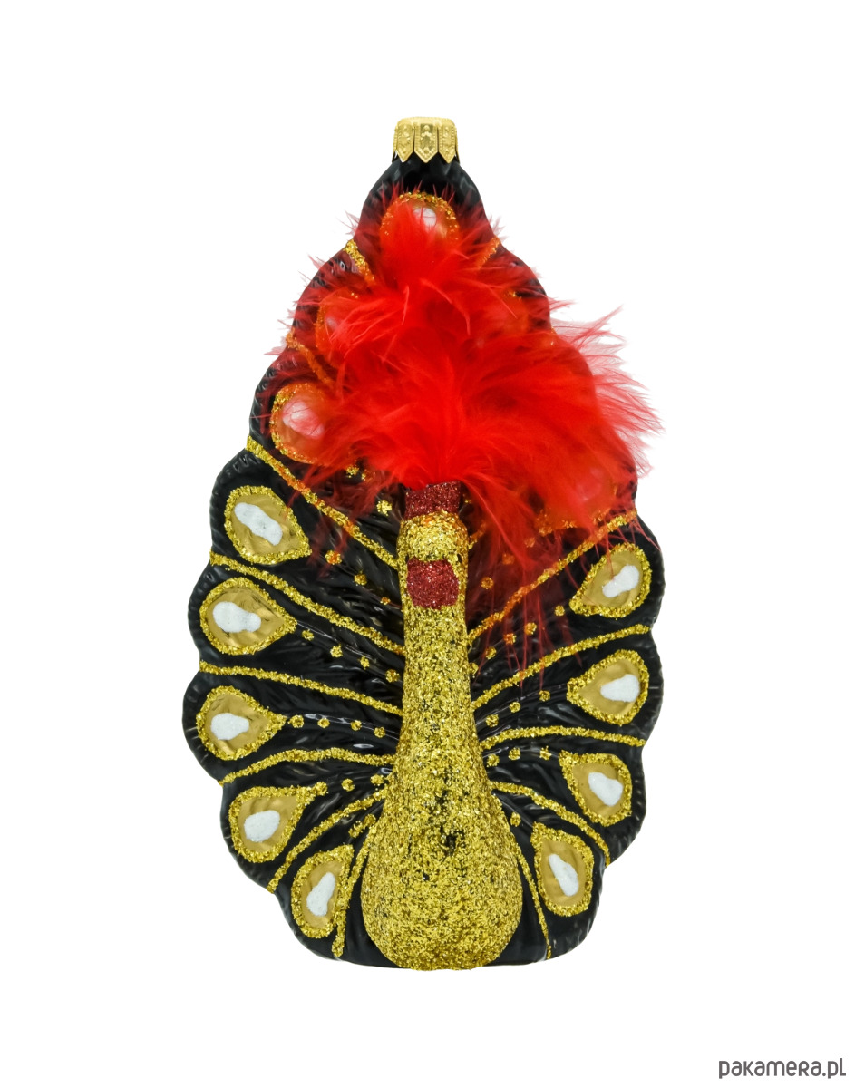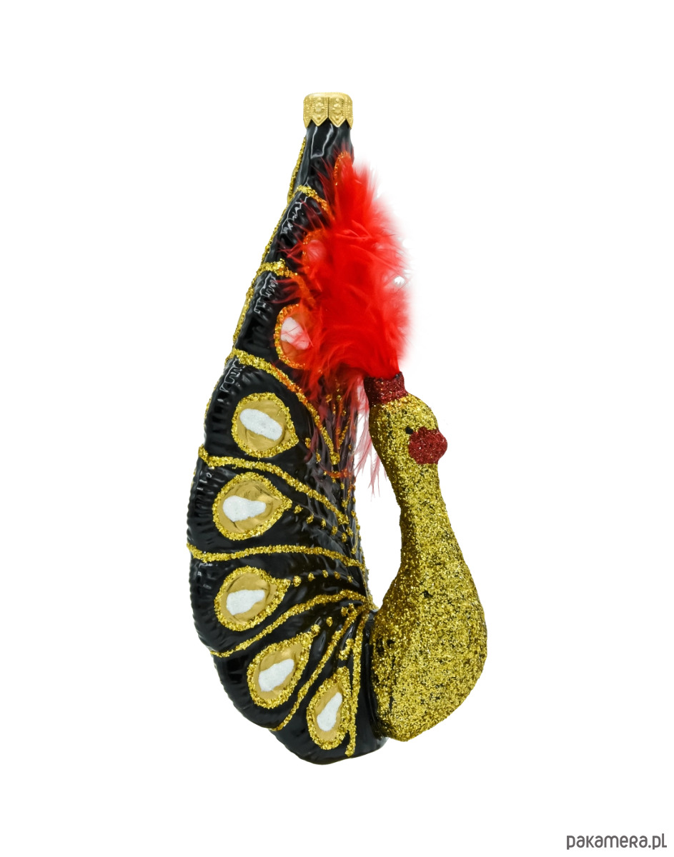 Bombka choinkowa: Paw z piórami: czarno-złoty