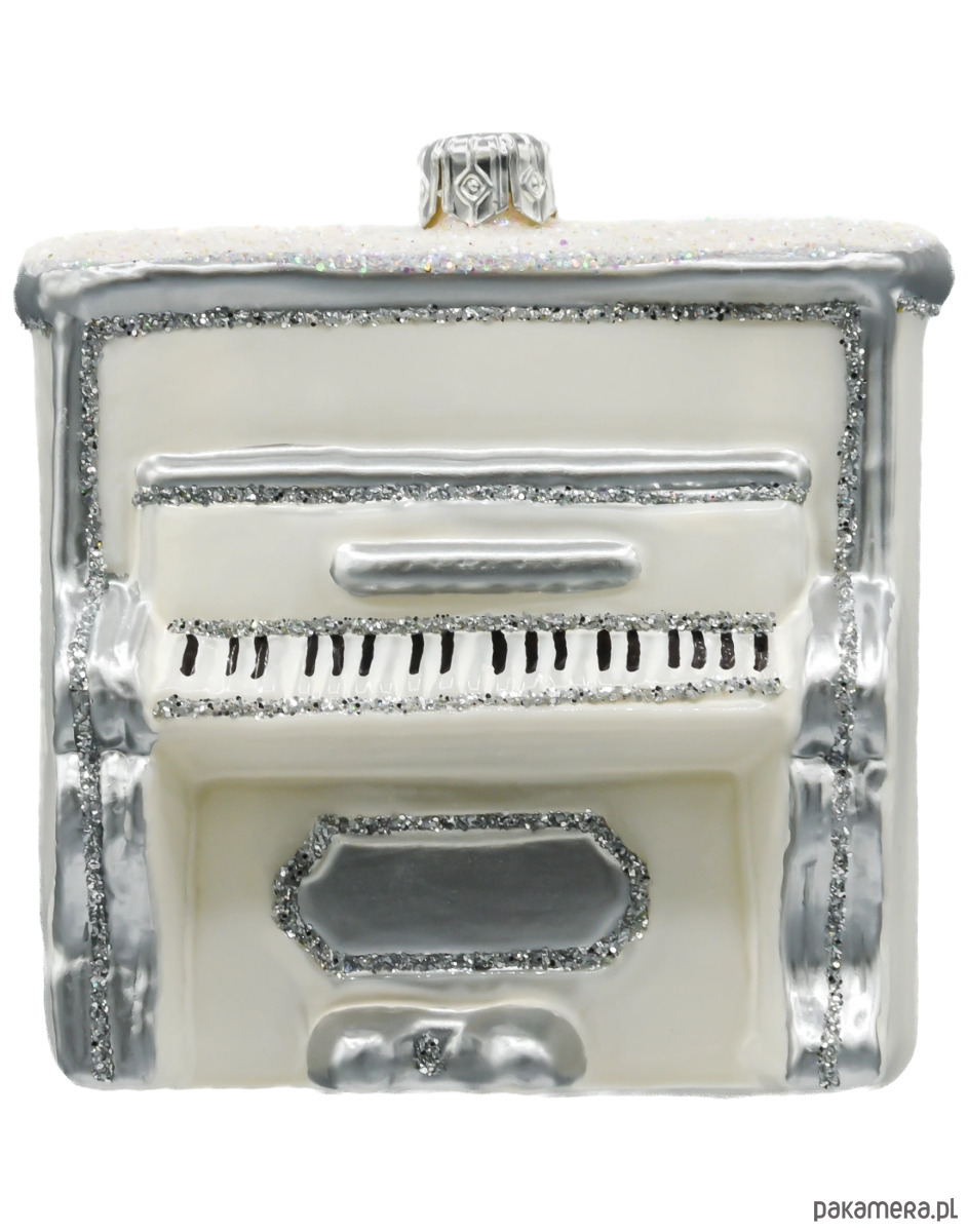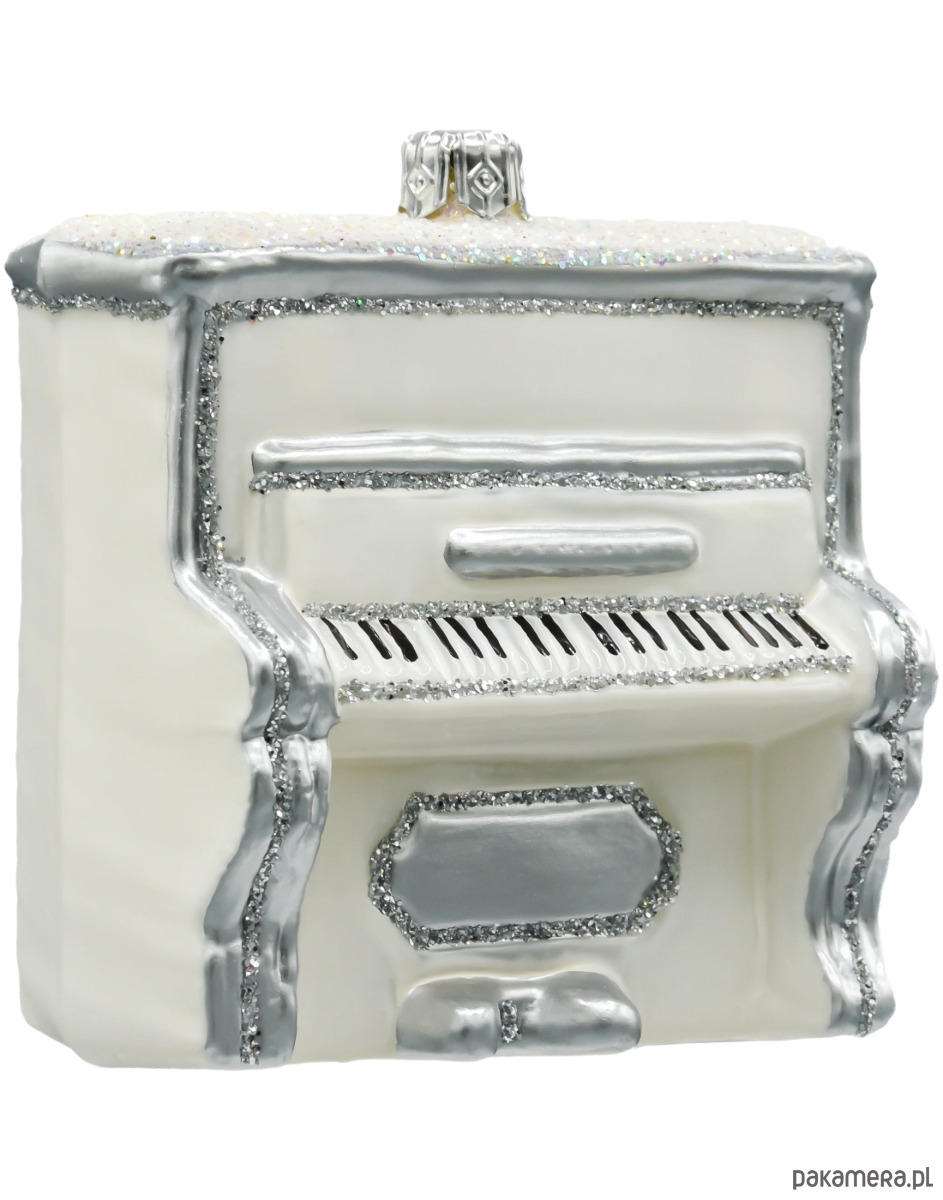 Bombka choinkowa: Pianino w bieli ze srebrnymi zdobieniami