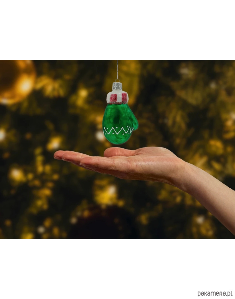 ✔ Szklana bombka w kształcie zielonej rękawiczki zimowej