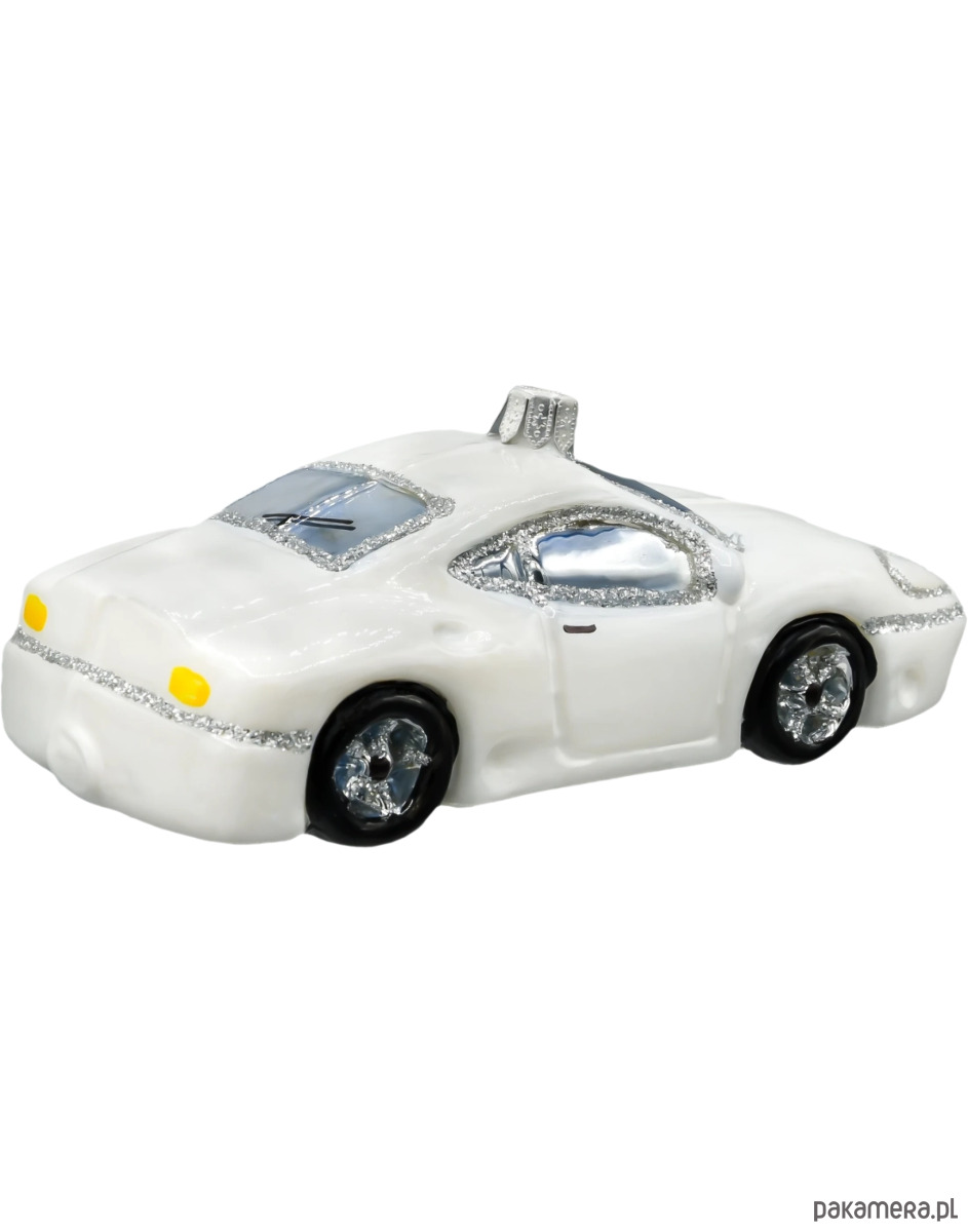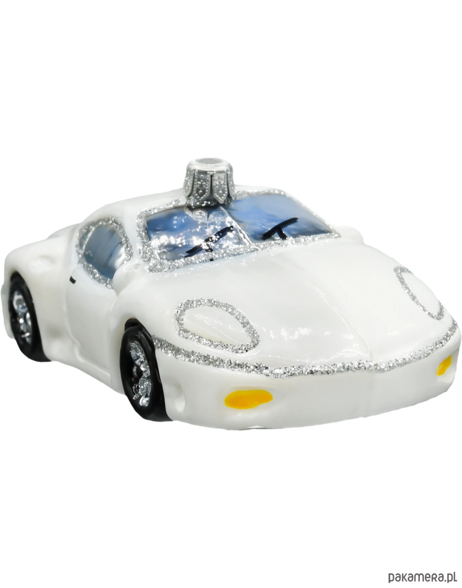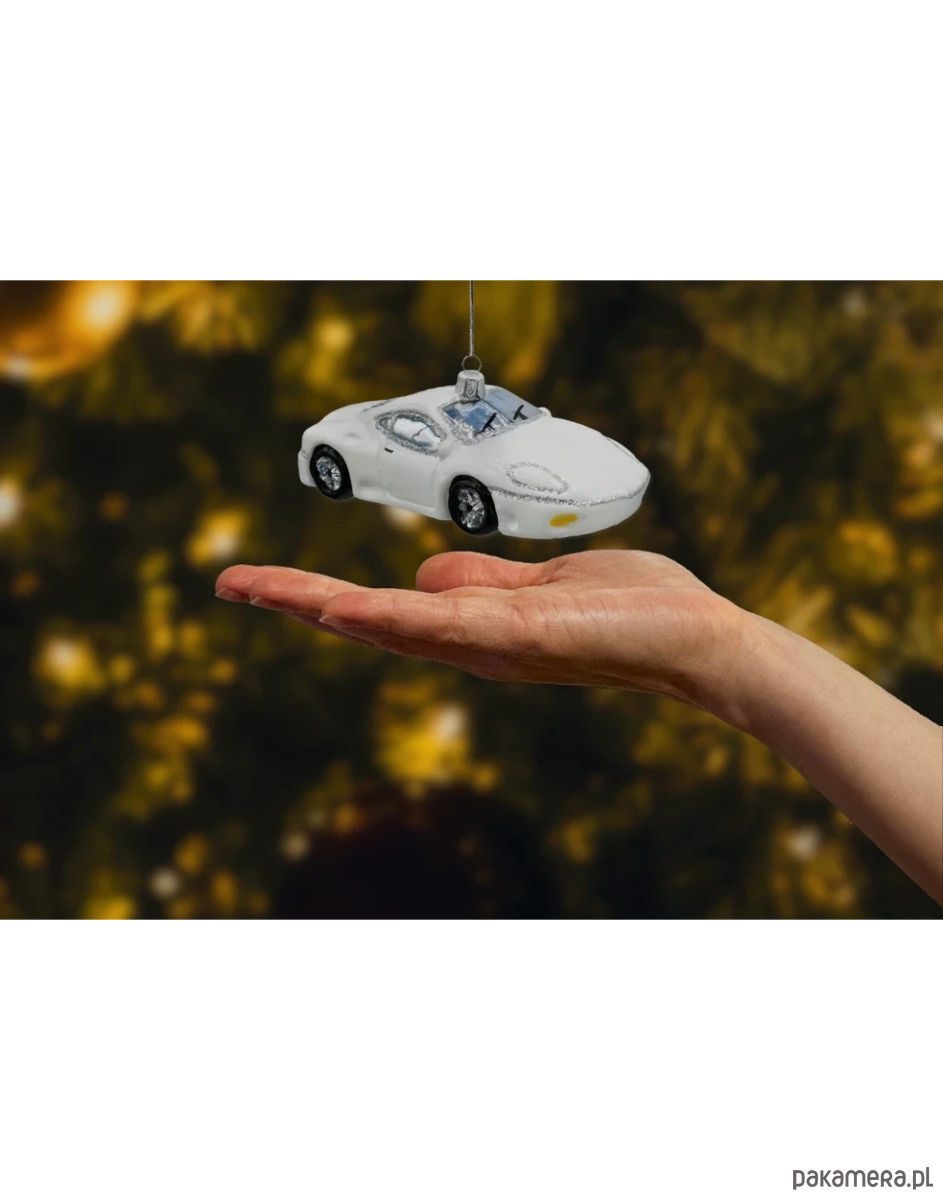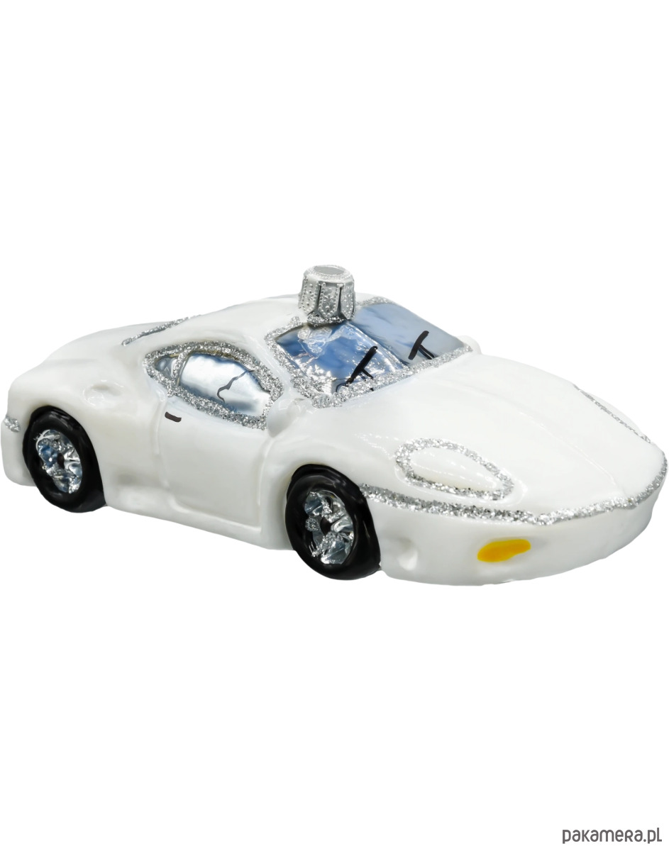 Bombka choinkowa biały sportowy samochód – nowoczesna ozdoba świąteczna dla fanów motoryzacji