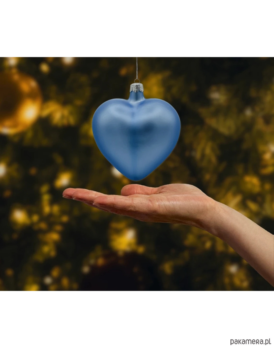 Szklana bombka w kształcie serca w subtelnym, lodowoniebieskim kolorze emanuje spokojem i delikatnością. Matowe wykończenie nadaje jej szlachetny charakter, który pięknie współgra ze świątecznym światłem. To doskonały wybór dla osób ceniących prostotę i elegancję – idealnie uzupełni aranżacje w stylu skandynawskim, klasycznym lub nowoczesnym.