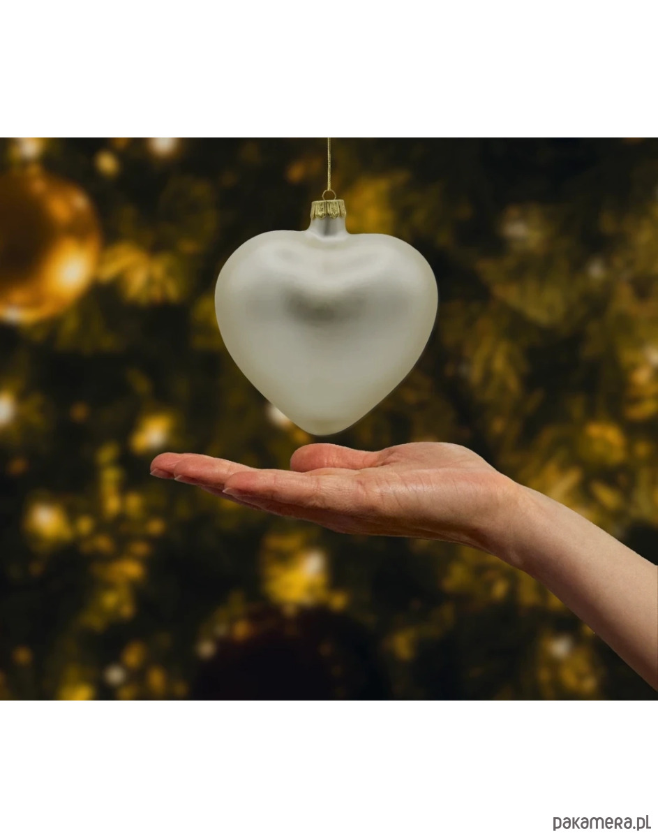 Wytworna, minimalistyczna i pełna wdzięku – ta szklana bombka w kształcie serca w kolorze eleganckiej perły to propozycja dla miłośników klasycznych, a jednocześnie nowoczesnych dekoracji świątecznych. Jej matowe wykończenie subtelnie rozprasza światło, tworząc efekt delikatnego połysku, który nadaje wnętrzu wyjątkowego blasku i spokoju.