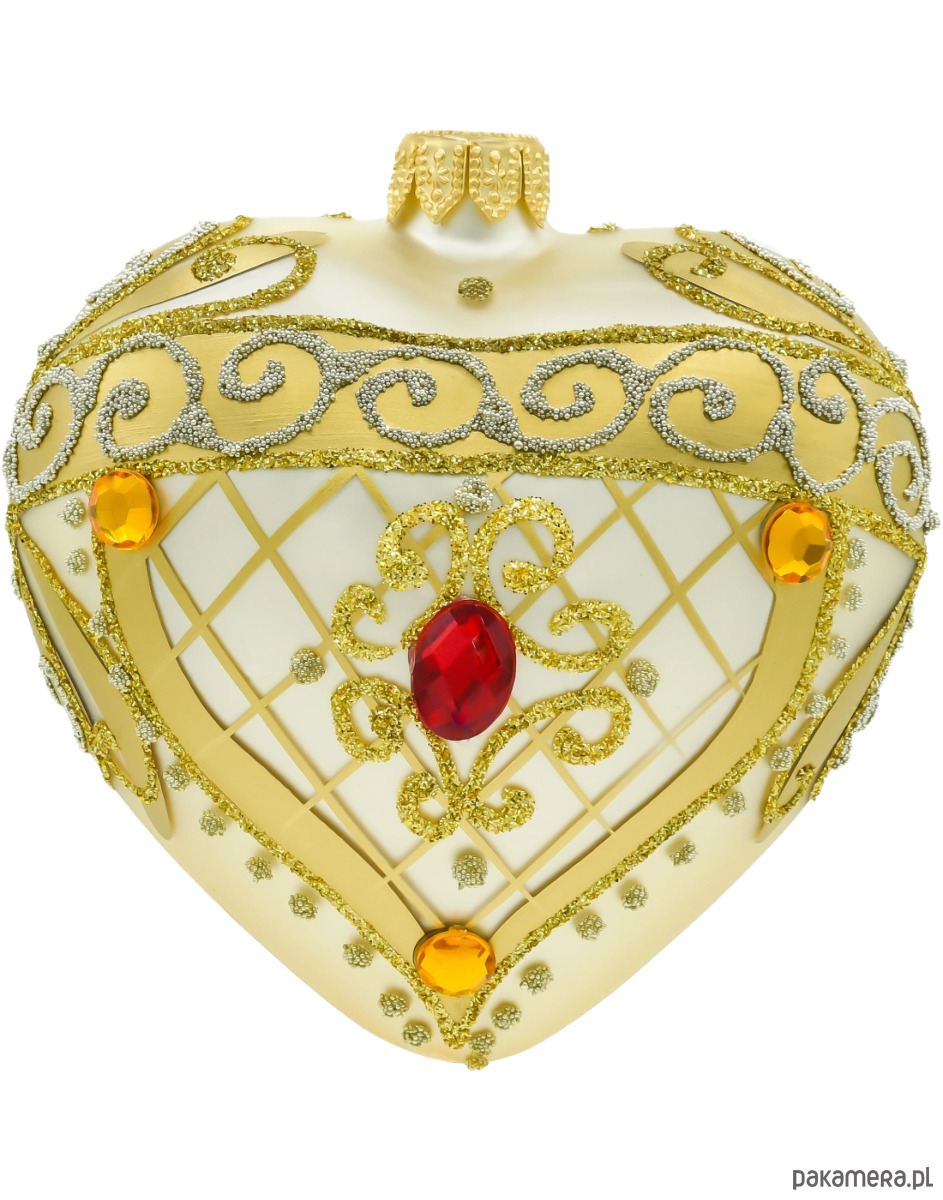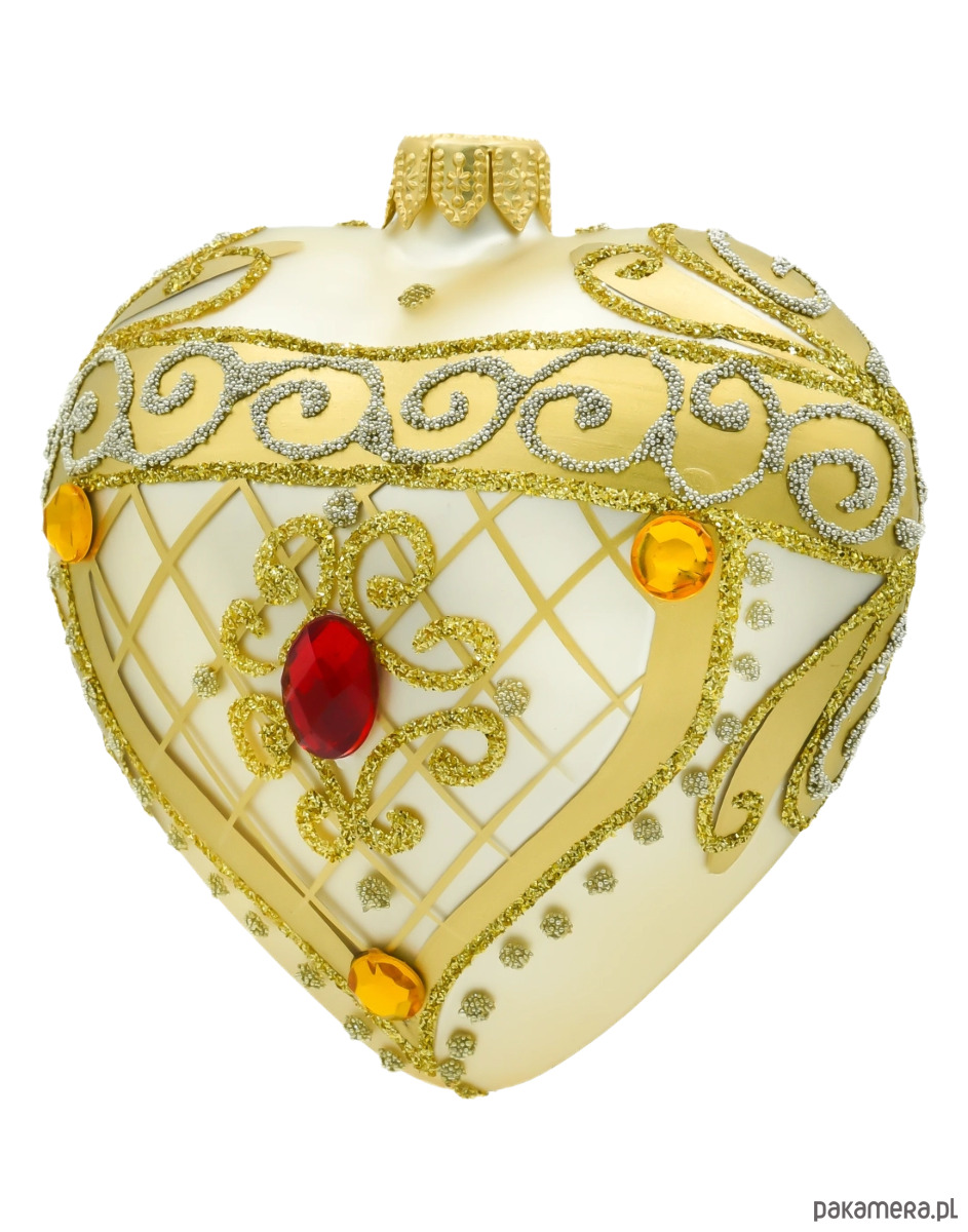 Bombka choinkowa: Serce z eleganckimi zdobieniami i kamieniami: złote