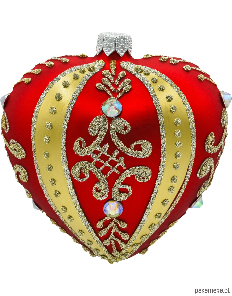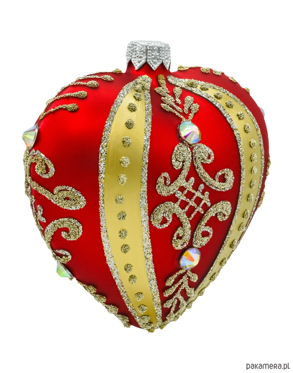 Bombka choinkowa: Serce ze złotymi zdobieniami i kryształami: czerwone