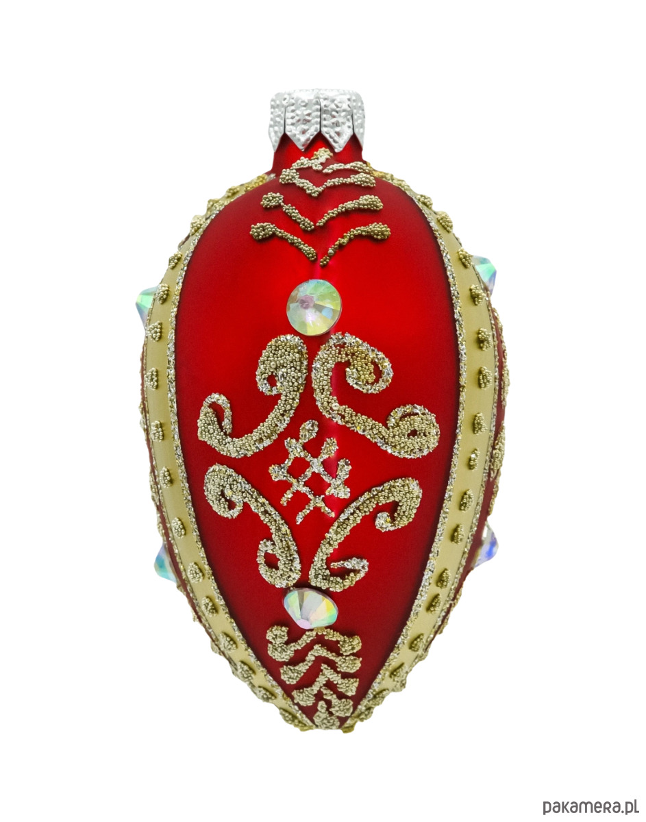Aby bombka zachowała swoje piękno na lata, zaleca się jej przechowywanie w oryginalnym opakowaniu lub owiniętą w miękki materiał, aby chronić ją przed uszkodzeniami. Unikaj narażania bombki na wilgoć oraz gwałtowne zmiany temperatury, które mogą wpływać na kolor i zdobienia. Do czyszczenia używaj delikatnej, suchej szmatki – unikaj kontaktu z wodą i środkami chemicznymi, aby nie uszkodzić złotych ornamentów i kryształów.