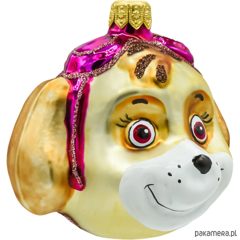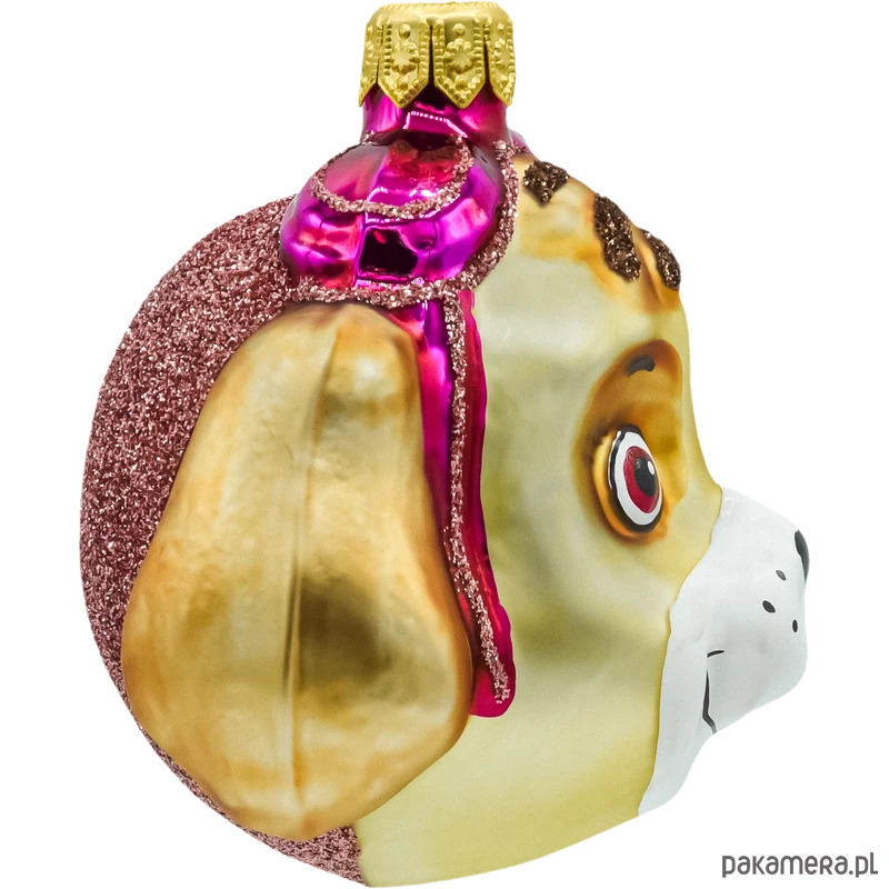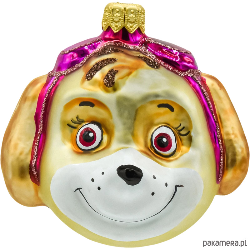 • Forma: figuratywna bombka – główka pieska pilotki (Skye).
