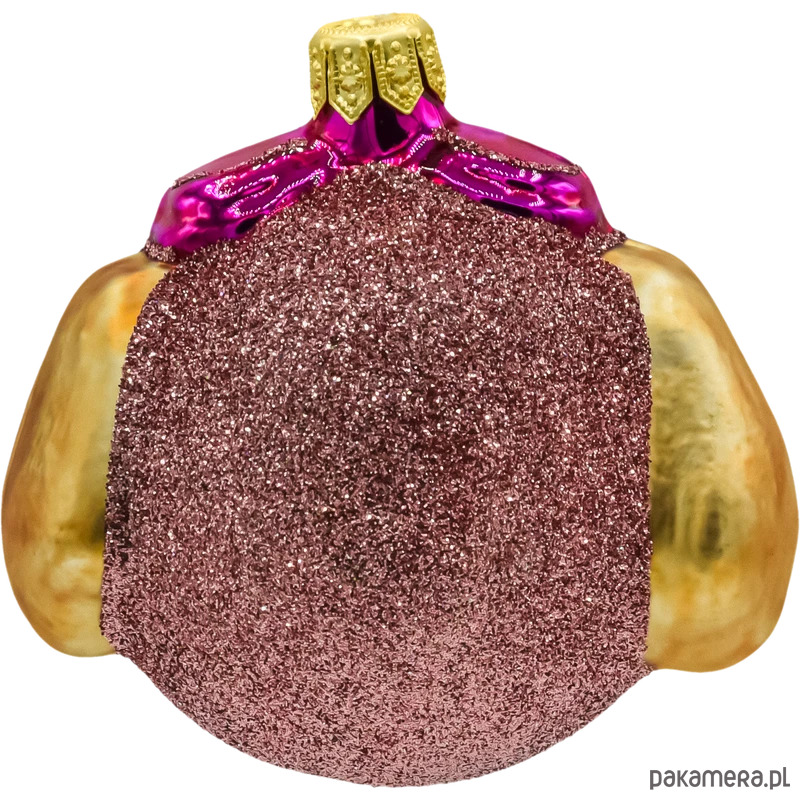 Urocza bombka w kształcie buzi dzielnej pilotki Skye to spełnienie marzeń najmłodszych miłośników świąt i bajkowych bohaterów. Powstała metodą tradycyjnego dmuchania szkła i została w całości ręcznie malowana przez dekoratorów – dzięki temu każda sztuka ma swój niepowtarzalny charakter. Intensywne, błyszczące kolory (krem i miód na futerku, róż metaliczny na goglach, brokatowy róż na rewersie) pięknie odbijają światło lampek choinkowych, a złota koronka (kapsel) nadaje całości świątecznej elegancji.
