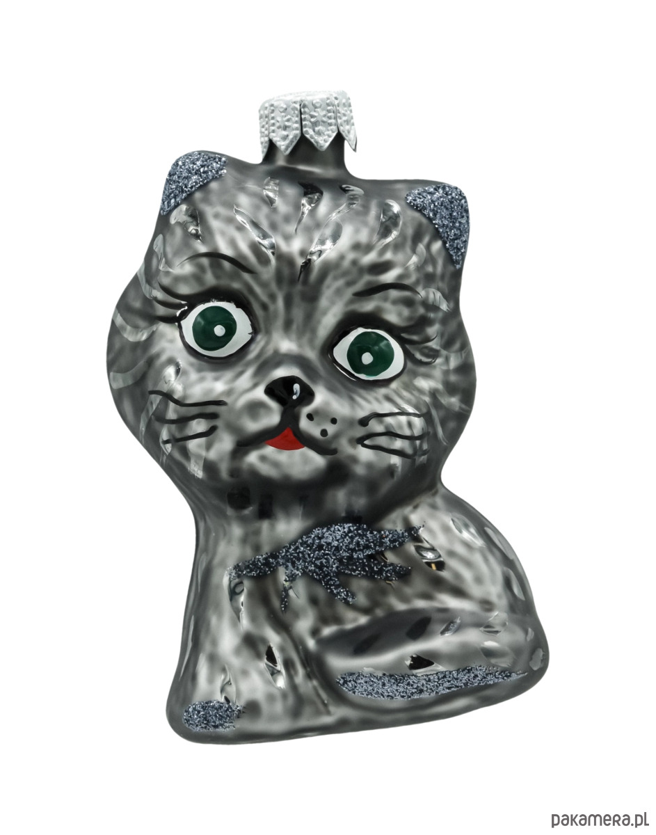 Unikalny design: Szary kotek z brokatem to ozdoba, która wyróżni się na tle innych świątecznych dekoracji.