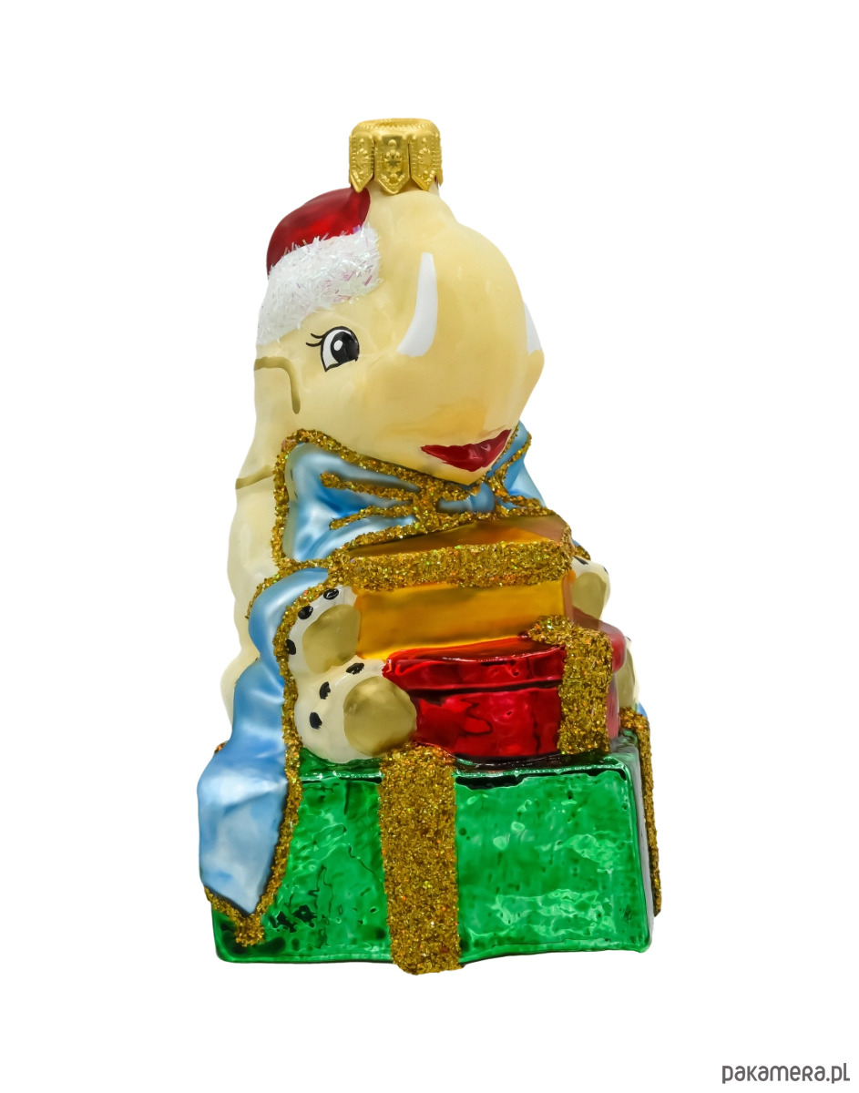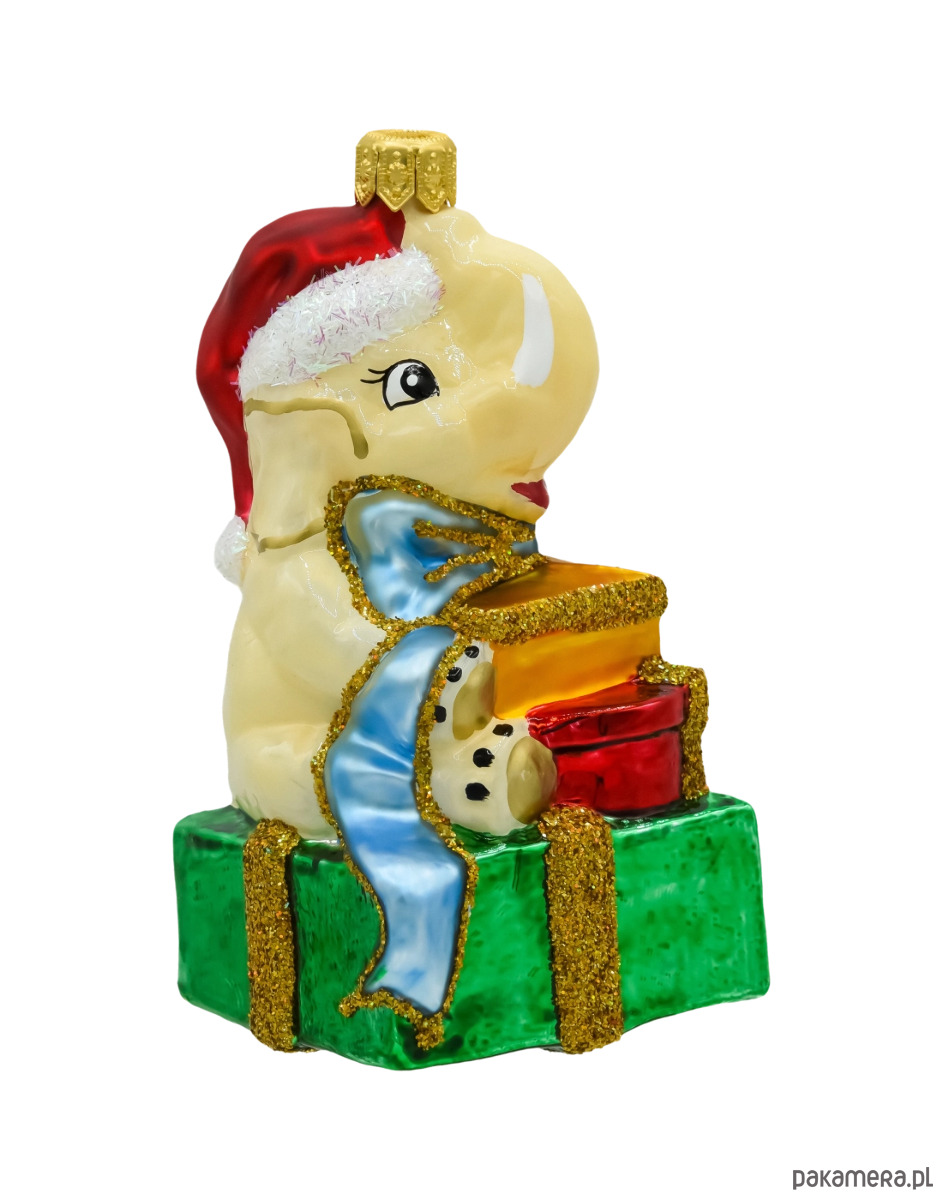 Bombka choinkowa: Słoń z prezentami: kremowy