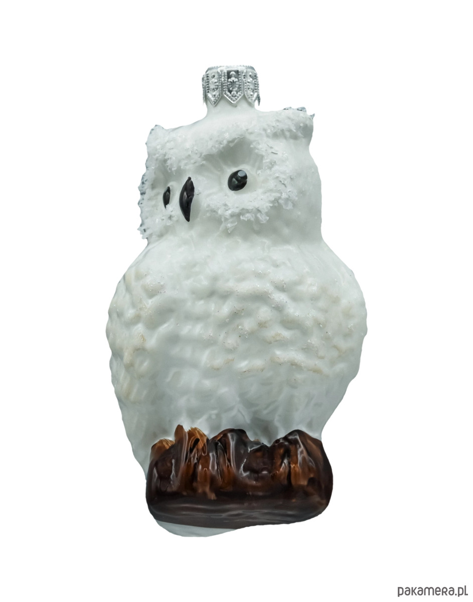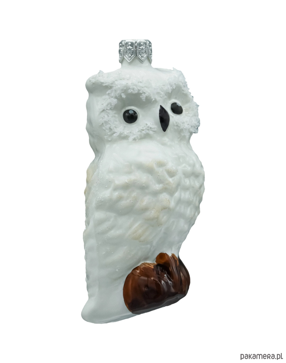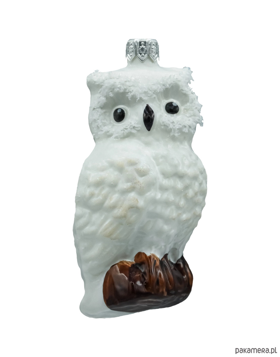 • szklana bombka figurka sowa biała – realistyczny, przestrzenny kształt