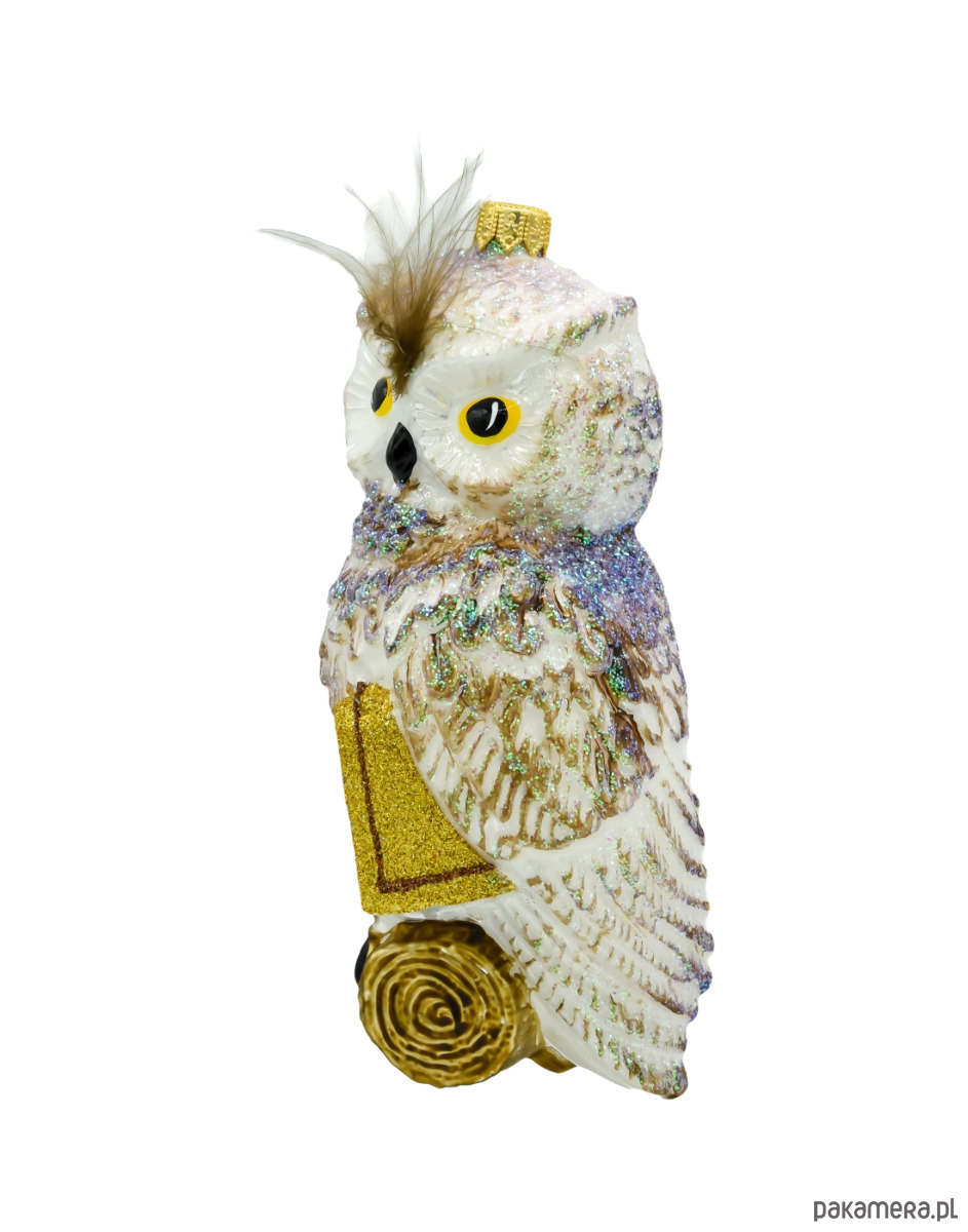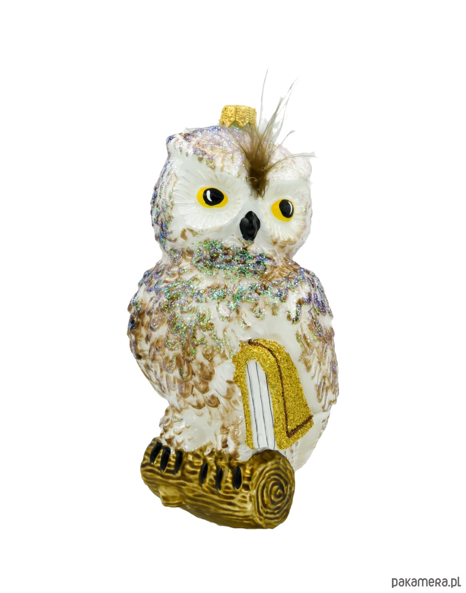bombka szklana w kształcie sowy siedzącej na książce