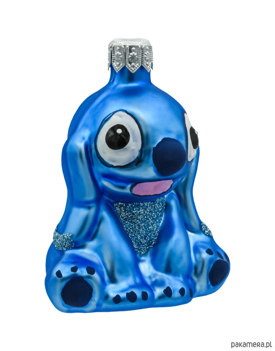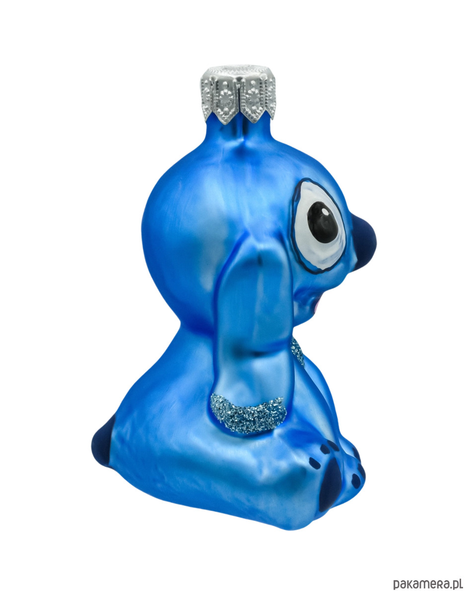 Wprowadź do swojej kolekcji świątecznych ozdób odrobinę bajkowej magii z tą wyjątkową szklaną bombką w kształcie postaci inspirowanej Stich’em – kultowym bohaterem z bajek. To ręcznie malowana figurka wykonana z dmuchanego szkła, która zachwyca intensywnym, błękitnym kolorem i charakterystycznym urokiem tej niepokornej, ale kochanej postaci.